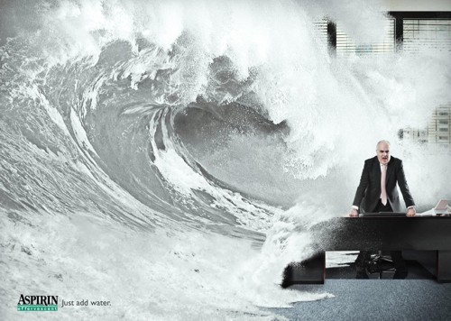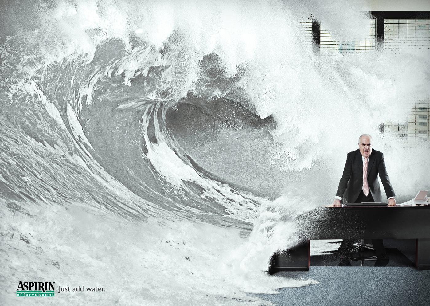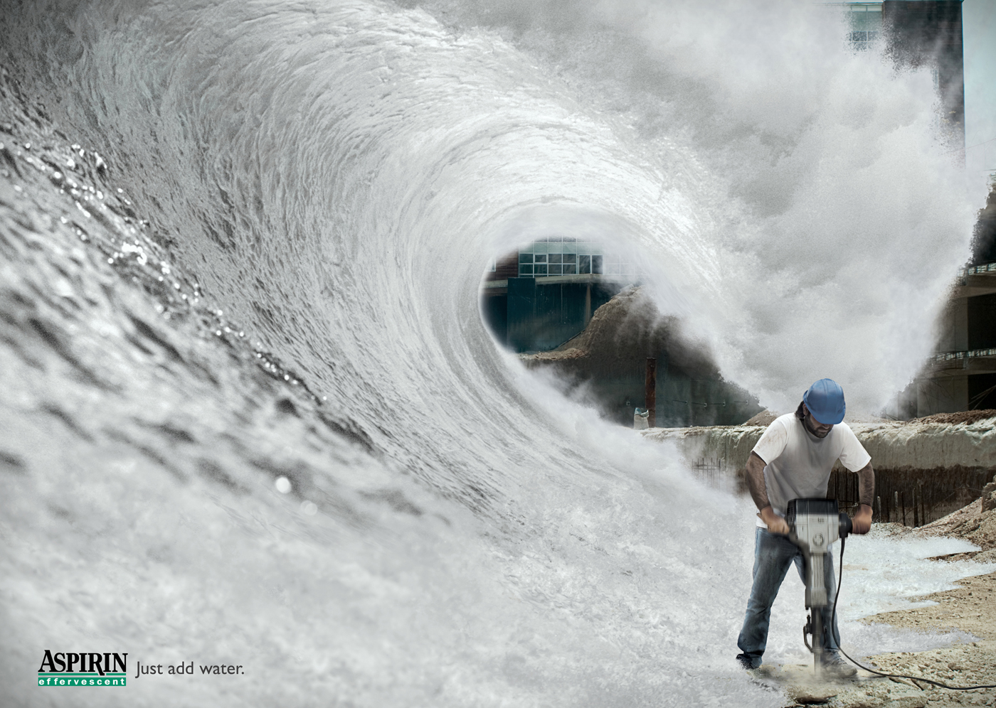 Шипучий Aspirin смоет головную больТак уж сложилось, что Aspirin (в России Аспирин), да и вообще многие болеутоляющие препараты, нередко даруют креаторам широкий простор для творчества. Эти принты, подготовленные мексиканским рекламным агентством BBDO Mexico для растворимой вариации Aspirin Effervescent, - не исключение. Вообще, агентство BBDO уже не первый раз работает над созданием рекламных кампаний для болеутоляющего препарата Aspirin. Так креаторы из немецкого BBDO рассказывали о преимуществах порошкового Aspirin Effect, а индонезийцы из BBDO Jakarta загрузили мозг, представляя классический Aspirin. Слоган: «Шипучий Aspirin. Просто добавь воды.» Агентство: BBDO Mexico, Мексика |