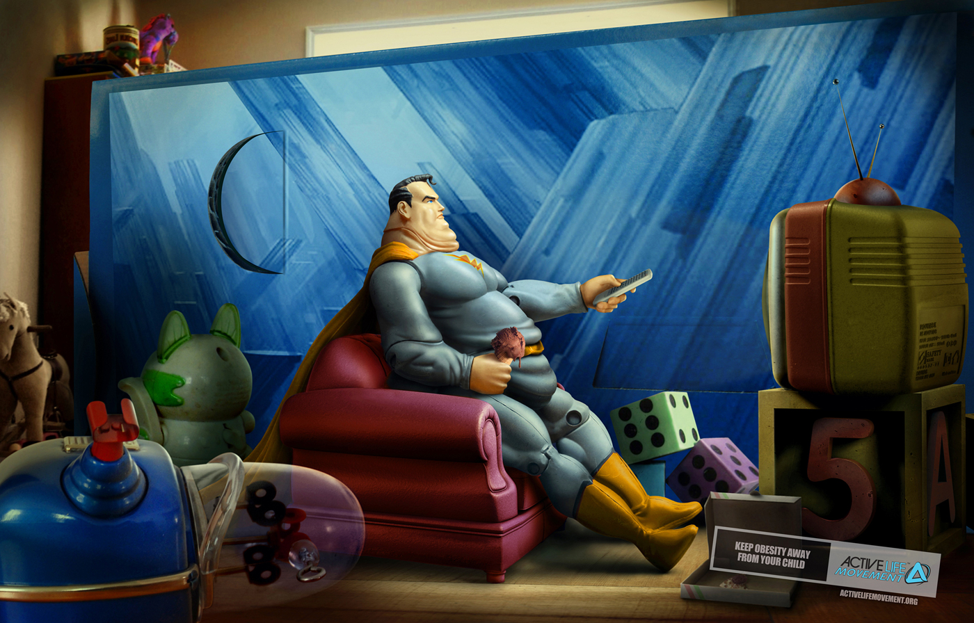 Жирные игрушки Active Life MovementБич современного мира со всеми его фаст-фудами, искусственными ингредиентами и малоподвижным образом жизни - ожирение и, как следствие, проблемы со здоровьем. Самое страшное это то, что ожирением страдают не только взрослые, но и дети. Ну а в Америке эта проблема стоит наиболее остро, поэтому местная организация Active Life Movement поставила своей целью бороться с ожирением, призывая всех вокруг вести активный образ жизни. В результате усилий этой организации и рекламного агентства Latinworks мир увидел эту серию социальных принтов.Слоган: "Держите своих детей подальше от ожирения". Агентство: Latinworks, Austin, США Главный творческий директор: Sergio Alcocer Творческий директор: Diego Castillo, Lewis Sempertegui Арт-директор: Daslav Maslov Копирайтер: Diego Castillo, Lewis Sempertegui Иллюстратор / Фотограф: Ricardo Salamanca Исполнительный эккаунт-менеджер: Lonnie Limon Менеджер по производству: Steve Grill |