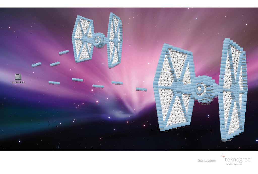Teknograd спасает компьютеры пользователей от космической угрозыРА TBWA продолжает кампанию для Teknograd - официальной службы поддержки Mac, начатую агентством 2008scandinavia и знакомит зрителя с новой опасностью, которая подстерегает ваш Mac на просторах всемирной паутины. В данном случае в роли угрозы выступают всем полюбившиеся имперские штурмовики из легендарного творения Джорджа Лукаса, собранные из всевозможных папок и файлов.Агентство: TBWA\OSLO Креативный директор: Erik Heisholt Арт директор: Martin Holm Копирайтер: Erik Heisholt Иллюстратор: Martin Holm |