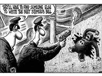 New York Post изобразила автором плана Обамы бешеную обезьянуВ последнем номере газеты New York Post от 18 февраля была опубликована карикатура, из-за которой редакцию обвинили в расизме. В рисунке застреленного полицейскими шимпанзе многие усмотрели намек на президента США Барака Обаму. На карикатуре, нарисованной известным иллюстратором Шоном Делонасом, изображены двое полицейских и застреленная ими обезьяна. Один из полицейских говорит: "Теперь придется искать другого для создания плана по поддержанию экономики". Отметим, что план экономического стимулирования на сумму 787 миллиардов долларов, недавно одобренный руководством США, был предложен именно администрацией Барака Обамы. Сюжет для рисунка был почерпнут Делонасом из недавней новости о том, как снимавшаяся в рекламе дрессированная обезьяна напала на хозяйку. Вызванным на место происшествия полицейским не удалось успокоить разъяренное животное, и шимпанзе пришлось застрелить. За разъяснениями в редакцию New York Post и лично к художнику обращался целый ряд изданий, в частности - Huffington Post, однако никаких комментариев ни от газеты, ни от карикатуриста пока не поступало.![]() LENTA.RU |