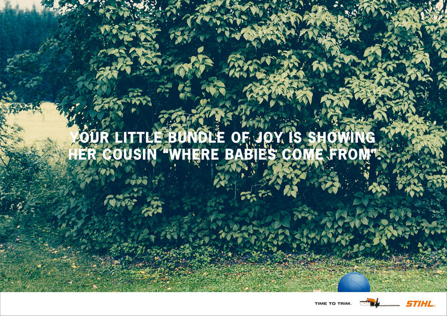 Приятная сторона работы STIHLРекламная кампания триммеров STIHL от французского РА Publicis Conseil, обыгрывая тему секса, рассказывает потребителю о приятной стороне ухода за растительностью, произрастающей на территории вашего поместья.Время стричься Агентство: Publicis Conseil, France Клиент: STIHL |