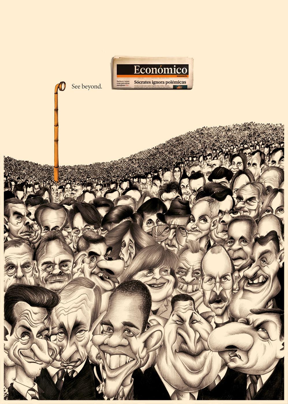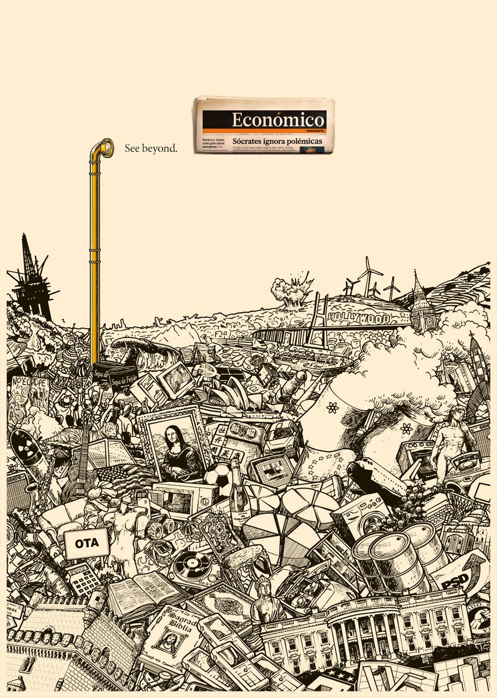 С газетой Economico видно большеРекламная кампания газеты Economico от агентства Fisher на первый взгляд может показаться юмористической выходкой креаторов, но это не так. С помощью карикатуры и юмора, Economico акцентирует внимание зрителя на просто вопросе, как отличить вымысел от правды, как среди гор мусора увидеть истинное положение вещей. На эти животрепещущие вопросы поможет ответить газета Economico.Агентство: Fisher, Portugal Креативный директор: Diogo Melo Арт директор: Marcelo Melo Копирайтер: Nuno Leal Илюстратор: Nuno Duarte |
