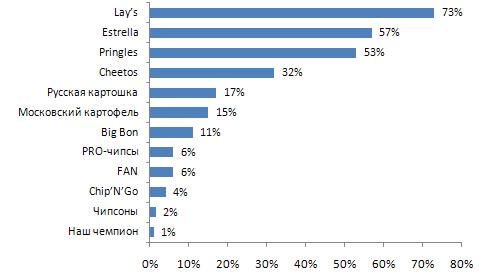 Каким чипсам и почему отдает предпочтение российская молодежь?Profi Online Research опубликовала результаты исследования на тему потребления продуктов, относящихся к категории импульсного спроса. Опрос проводился в декабре 2008 года среди жителей российских городов-миллионнников и охватил 1400 молодых людей в возрасте от 14 до 24 лет, которые в течение последних 2-3 месяцев покупали такие продукты как чипсы, шоколадные батончики, пиво, энергетики, газированные напитки и т.д. Основное внимание уделялось оценке уровня знания марок, предпочтениям аудитории и влиянию цены на выбор респондентами того или иного бренда.В ходе исследования выяснилось, что 87% молодых людей постоянно покупают чипсы одного-трех любимых брендов. Лишь 21% выразили сильную привязанность к какой-то конкретной марке и не готовы "изменять" ей. Около 7% идут на эксперименты и пробуют новинки, появляющиеся на рынке (см. рис. №1). Порядка 66% молодых потребителей чипсов достаточно лояльно настроены к нескольким брендам, однако, ярко выраженной приверженности к какой-то конкретной марке они не испытывают, поэтому в момент совершения покупки приобретают один из брендов, который присутствует в ассортименте торговой точки. ![]() Рис. №1: Потребительские предпочтения в отношении выбора марки чипсов На что покупатели обращают внимание, выбирая чипсы? В ходе исследования респондентам предлагалось указать несколько факторов, оказывающих влияние на их решение купить продукт того или иного бренда. Восемь из десяти опрашиваемых отметили, что для них самое важное - это наличие у производителя любимого вкуса. На выбор 59% большое влияние оказывает стоимость продукта, "хрустящие свойства" чипсов важны для 53% потребителей. Порядка 18% молодых людей считают, что чипсы не должны вредить здоровью. По всей видимости, причина кроется здесь в том, что с самого детства они слышат от родителей, что все, пришедшее с "запада", вредно. Взрослея, люди могут продолжать испытывать недоверие к иностранным продуктам, поэтому выбирают марки, которые, по их мнению, содержат меньше консервантов и других химических веществ. Около 12% респондентов рассматривают чипсы как дополнительный элемент своего имиджа. Одной из причин этому является активность рекламной политики производителей, направляющих свои усилия на формирование представления о чипсах как о продукте, который предназначен для ярких и успешных личностей (см. рис. №2). ![]() Рис. №2: Факторы, влияющие на выбор марки чипсов В зависимости от частоты потребления данного продукта, исследователями Profi Online Research выделено несколько основных групп молодых россиян. В первую входят люди, которые едят чипсы более 1 раза в неделю - она составляет 27% от общего числа потребителей. Около 24% потребляют чипсы не чаще 1 раза в неделю. К третьей группе специалисты Profi Online Research отнесли людей, употребляющих их несколько раз в месяц - 22% (см. рис. №3). Едят чипсы каждый день 11%, не чаще одного раза в месяц - 17%. ![]() Рис. № 3. Частота потребления чипсов среди российской молодежи Самой известной маркой в среде молодых потребителей является "Lay's" (96%), за ней, с незначительным отставанием, следуют "Estrella", "Pringles", "Cheetos", "Big Bon", "Русская картошка". Как минимум 8 из 10 человек известны эти бренды. По уровню потребления лидерство также принадлежит "Lay's" (80%), затем с отрывом на 26 процентных пунктов следует "Estrella" (см