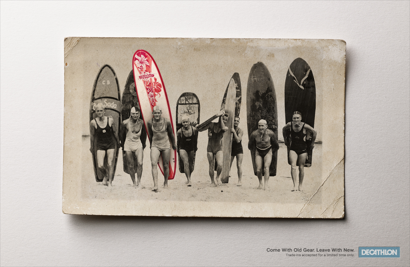 Спортивный супермаркет Decathlon запустил программу trade-inDecathlon (Декатлон) - это французская сеть супермаркетов спортивных товаров, входящая в группу Auchan (Ашан). Магазины этой сети есть и в России, но вот только русским повезло меньше, чем французам. Дело в том, что, как сообщают креаторы из РА Y&R Paris, в магазинах Decathlon, расположенных во Франции, действует необычная программа trade-in, в рамках которой обладатель старой экипировки может обменять ее на новую с доплатой.Слоган: "Приходи со старой экипировкой. Уходи с новой." Агентство: Y&R Paris, Франция Ретушь: Sparklink Фотограф: Richard Fremont Главный творческий директор: les six Арт-директор: Mark Forgan, Stephanie Pasteur Копирайтер: josselin pacreau |