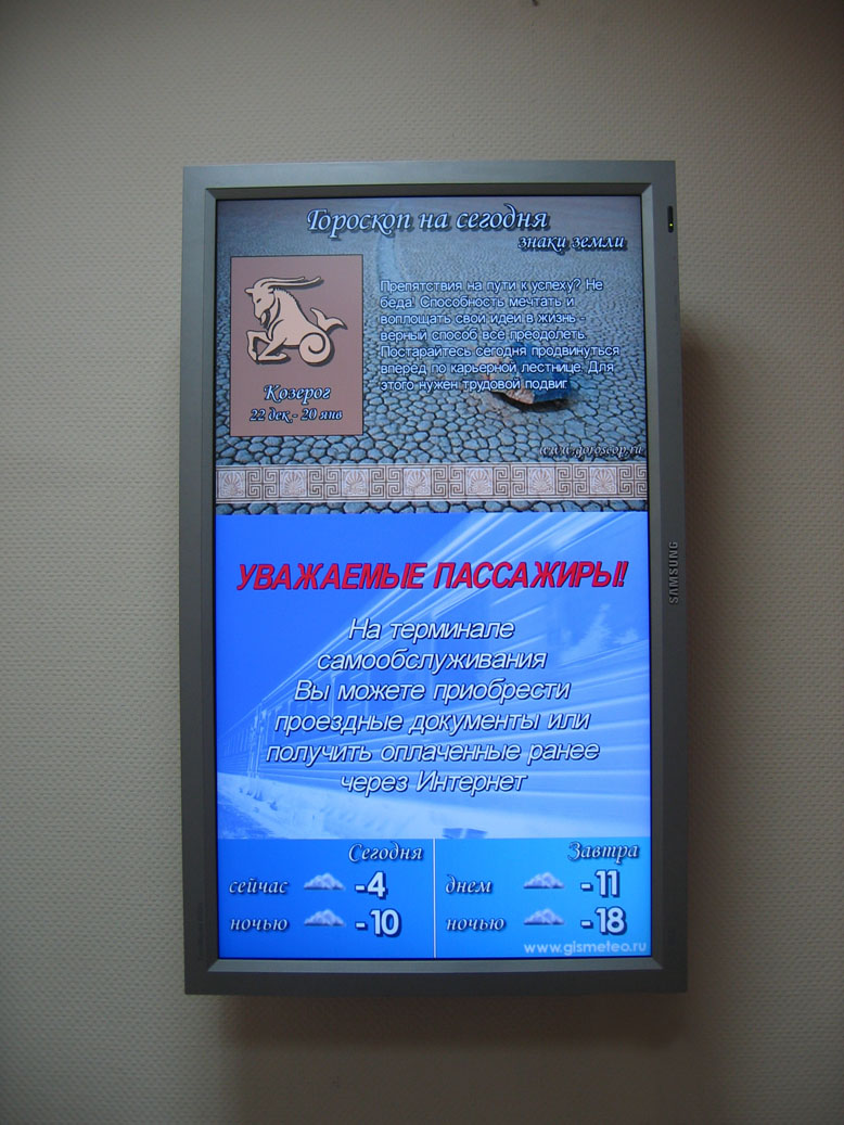Компания "Миракс инТВ" завершила установку вертикально размещенных видеомониторов формата 46 дюймов в офисных зданиях Бизнес-центра "Поларс" на Дербеневской набережной. Особенности данного рекламного носителя в том, что здесь возможна демонстрация динамичных электронных цифровых изображений - видеопостеров, когда статичное изображение, вдруг неожиданно "оживает", что позволяет привлекать внимание потребителей эффективнее статичной рекламы и доносить больший объем информации чем плакат или лайтбокс. Расположение мониторов в бизнес-центре обеспечивает рекламодателям возможность непосредственного обращения к обеспеченной, платежеспособной аудитории. В настоящее время Компания МИРАКС ИнТВ осуществляет установку видеомониторов в салонах "Дворцы связи" компании "Евросеть". На сегодняшний день это особенно актуально в рамках договоренности МТС и "Евросети" об эксклюзивном сотрудничестве. Компания "Миракс инТВ" является дочерней компанией Корпорации "Mirax group" и официальным представителем по размещению рекламных конструкций в здании Курского вокзала, в зданиях элитной жилой недвижимости и бизнес-центрах Корпорации "Mirax group", а так же обладает эксклюзивным правом по размещению любых рекламных конструкций на задниях Корпорации, в том числе на башнях Федерация. |
