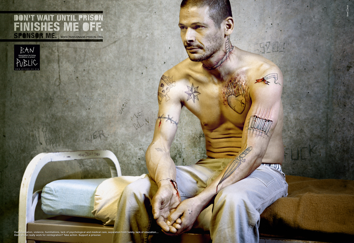 Ban Public призывает спонсировать заключенныхОрганизация Ban Public, деятельность которой направленная на улучшения условий содержания заключенных в тюрьмах, с помощью рекламной кампании показывает общественности, с какими опасностями сталкивается каждый день обычный заключенный. Основной акцент кампании делается на условиях содержания заключенных, которые не только не способствуют перевоспитанию, но и а наоборот, усугубляют и без того тяжелое душевное и физическое состояние осужденных.Для того чтобы помочь этим людям Ban Public и TBWA\MAP обращаются к общественности с призывом помочь заключенным своими пожертвованиями. Не хочу ждать, пока тюрьма прикончит меня. Поддержите меня. Агентство: TBWA\MAP, Boulogne Billancourt, France Креативные директора: S?bastien Vacherot, Manoelle Van Der Vaeren Арт директора: Julien Boissinot, Nicolas Pontacq Копирайтер: Kevin Salembier Фотограф: Marc Gouby |