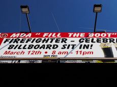 Пожарные из Юмы, Сомертона и Сан-Луиса (штат Аризона, США) приняли участие в необычной акции в поддержку благотворительной организации Muscular Dystrophy Association (фонд борьбы с мышечной дистрофией). Они весь день провели на щите, размещенном на одной из улиц Юмы, призывая прохожих пожертвовать деньги для фонда.
