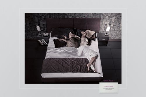 Рекламное агентство ADE: лучше операция, чем хряк в постели!Храп - не просто банальный недостаток, вызывающий раздражение у близких людей, а достаточно тяжелая болезнь, связанная с нарушением дыхания спящего человека. Сегодня существует несколько способов лечения храпа: терапия с помощью специальных приборов и устройств, медикаментозные средства или хирургическое вмешательство.Именно последнюю методику применяет колумбийский пластический хирург и отоларинголог в одном лице Николас Хередия (Nicolas Heredia), для клиники которого агентством ADE и разработан этот рекламный принт. Агентство: ADE, Богота, Колумбия Творческий директор: Nacho Martinez Арт-директор: Giovanny Saavedra Копирайтер: Francisco Gonzalez, Checho Фотограф: Sandra Sed?n, Cristian Borrero Другое: Natalia Berrio |