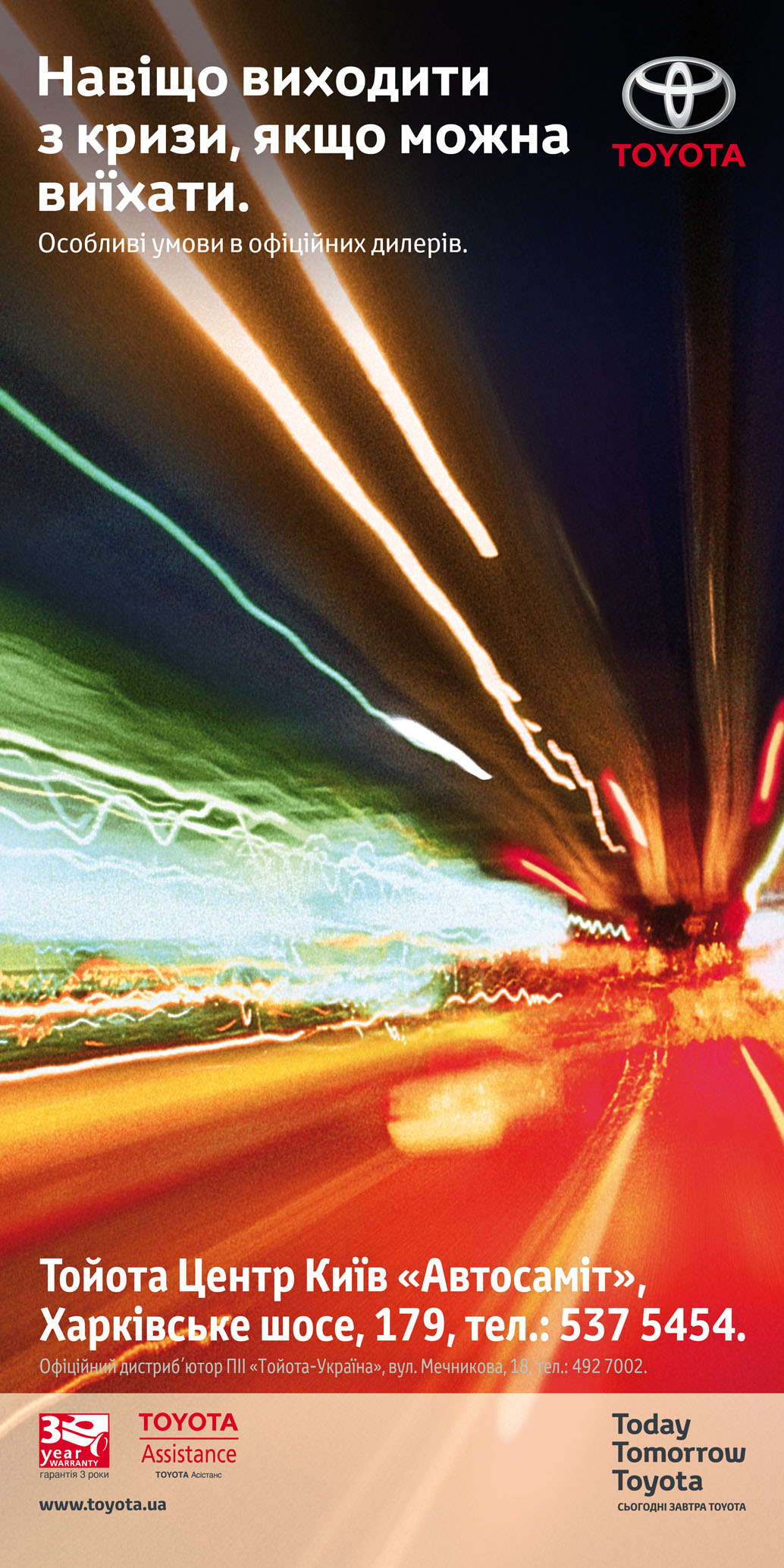 Sahar выиграло тендер на креативное обслуживание Lexus и ToyotaКреативное бюро Sahar объявило о победе в тендере на комплексное годовое обслуживание брендов Lexus и Toyota в Украине. Для укрепленного Sahar’а тендер имел большое значение - фактически он обеспечил первый в текущем году продолжительный контракт – на годовое обслуживание двух брендов «Тойота-Украина». Кризис требует радикальных решений даже от таких великих брендов, как Toyota. Потому участникам тендера, проходившего в декабре 2008 года, была поставлена задача – создать яркие, ироничные, эмоциональные, веселые решения для коммуникаций бренда в нынешний нестабильный период. Бриф был прост: цены зафиксированы в гривнах. Решение, выбранное клиентом для первой имиджевой кампании Toyota в 2009 году, – самое консервативное из предложенных агентством. Но даже эта коммуникация – нехарактерна, нестандартна и свежа для Toyota. Во время, когда остальные автомобильные бренды в коммуникациях делают акцент на ценах, слоган имиджевой кампании Toyota гласит: «Зачем выходить из кризиса, если можно выехать». А поскольку нестабильный период продолжается, в агентстве уверены, что рынок сможет увидеть и более смелые решения. Андрей Федоров, CEO креативного бюро Sahar: Когда контракт был подписан, наша команда приняла участие в тест-драйве всех моделей Lexus и Toyota. Мы пришли к выводу, что это очень интересная категория и гиперэмоциональный продукт. Да, покупку автомобиля принято считать рациональным решением, но мы убеждены, что роль эмоций при этом невероятно велика! Особенно приятно, что таким образом подтвердились соображения, которыми мы руководствовались, вступив в тендер. Ну а теперь мы прогнозируем, что бренд все-таки отойдет от консервативных решений и будет развиваться, реализовывая более радикальные идеи". Анна Гаврилюк, креативный директор Sahar: «Бриф на тендер был прост: цены зафиксированы в гривнах. Однако мы не пошли по простому пути. Мы отправились в салоны Toyota, чтобы поговорить с консультантами и выяснить, что же привлекает покупателей и как выглядит наша целевая аудитория. После этого мы скорректировали бриф, сделав акцент на особых условиях от дилеров для тех, кто в кризисной панике снял деньги с депозита и теперь думает, на что же их потратить, коль на квартиру не хватает. Предложения у нас были самые разнообразные по темпераменту и сообщению: от забавного слогана «Принимаем макулатуру. Специальные цены в гривнах» до эмоционального «ТАЙО-О-О!» В результате клиент выбрал идею, с юмором обыгрывающую кризис, как самую актуальную и работающую (на начало декабря)" Состав творческой группы