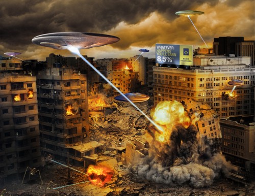 Banco Financiero все нипочем, даже НЛО и библейский потопВ разгар экономического кризиса Banco Financiero из Перу, с помощью РА Y&R Lima рассказывает потенциальным клиентам о своей стабильности и неизменной доходности клиентских вкладов. Как видно из серии принтов, клиенты Banco Financiero защищены от любого катаклизма.Независимо от того, что случится - вы получите 8.5% Агентство: Y&R Lima, Peru Креативный директор: C?sar Godenzi Арт директра: Oscar Takahashi, Christopher Graham, Kenneth Yohann Копирайтер: Jorge Soto |