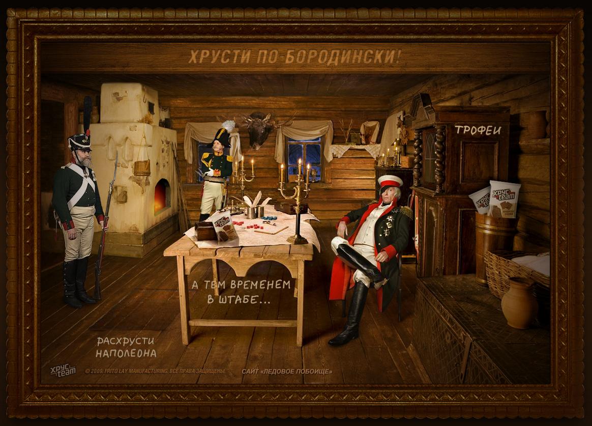 Xpycteam в интернетеВ марте 2009 в началась трансляция нового телевизионный ролика в поддержку бренда «Хрусteam Бородинские». Роликом был дан старт новой рекламной кампании, стратегию и креативную концепцию которой разработало агентство BBDO Moscow.“Первая кампания - «Ледовое побоище» - была очень эффективной: и продажи, и ключевые показатели бренда выросли, - говорит директор по работе с клиентами BBDO Moscow Кристина Танчер, - Поэтому и вторая кампания была основана на схожем подходе – исторический контекст, «переигранный» брендом по-своему, плюс Павел Воля в роли главнокомандующего, который с помощью «Xpycteam» в очередной раз смог «расхрустеть» врага. На этот раз основной фокус кампании был сделан на вкусе бородинского хлеба, вкусе, знакомом и любимом всеми». В поддержку телевизионной кампании были разработаны постеры, а 16 марта был запущен промо-сайт hrusteam.ru, разработанный агентством BBDO Interactive.