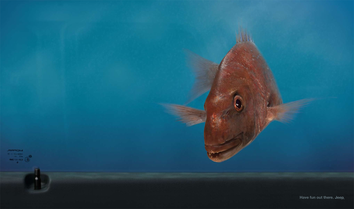Jeep и рыбалка – совместимыСозданием рекламных кампаний для автомобильной марки Jeep, принадлежащей корпорации Daimler AG, уже давно и успешно занимается сетевое агентство BBDO. Достаточно вспомнить такие удачные примеры, как оживший светофор и новые дорожные знаки от мексиканцев и нормандцев, доказательства существования легендарных созданий от BBDO Bangkok, соединение противоположностей от BBDO/Proximity Malaysia, американские варианты джип-скалолаза и джипа-жука, а также обожравшегося мишку по версии канадцев.Другие рекламные агентства тоже не раз демонстрировали свои навыки, в качестве примера можно привести ролики от американцев из Cutwater и TBWA. Сегодня свои силы пробуют новозеландские креаторы из РА 99, представляя рекламный принт, созданный специально для любителей рыбалки, читающих специализированный журнал «Fishing News», на страницах которого он и появился. Анна Акимова, Sostav.ru Агентство: 99, Окленд, Новая Зеландия Фотограф: Mark Carter Ретушь: Michael Currie Главный творческий директор: Craig Whitehead Творческий директор: Craig Pethybridge Креатив: Raymond McKay, Justin Wood Продюсер: Melissa Best Эккаунт-менеджер: Matt Dickinson and Kate Gilmour |