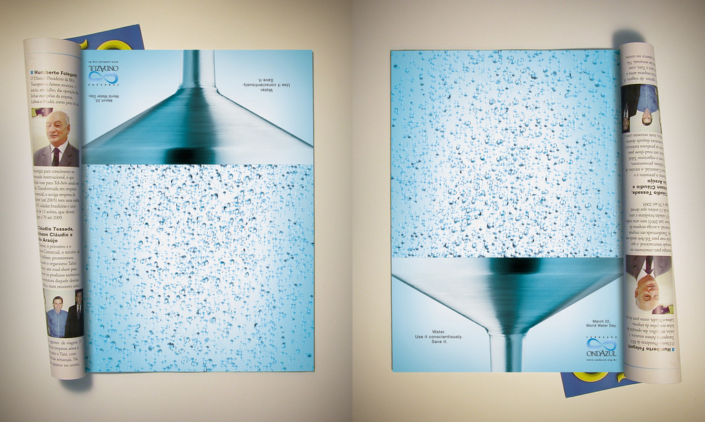 Ondazul Foundation отмечает Всемирный день водыНеобычная кампания, приуроченная Всемирному Дню Воды, вышла из-под пера креаторов агентства Que. Основной особенностью ее является необычное расположение на страницах печатного издания, а именно - плакат перевернут вверх ногами. Такое расположение не случайно, подобный ход необходим для того, чтобы донести до читателей послание от Ondazul Foundation.Вода. Используйте ее со всей ответственностью, берегите ее. 22 марта - Всемирный день воды. Агентство: Que, Rio de Janeiro, Brazil Клиент: Ondazul Foundation Арт директор: Fernando Freitas Копирайтер: Chiquinho Lucchini Фотограф: Rudy Hahold |