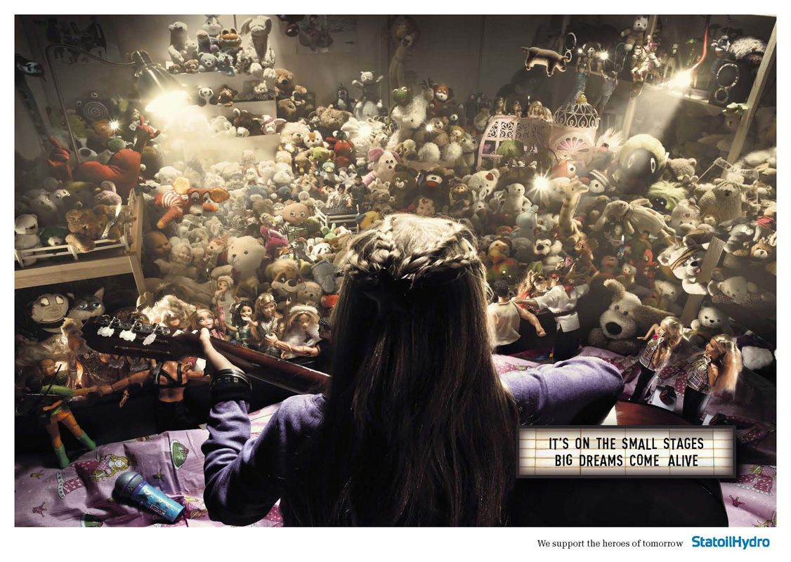 StatoilHydro взращивает будущих героевStatoilHydro - Норвежский нефтяной гигант и агентство McCann Oslo выпустили кампанию, целью которой является познакомить зрителя с программой помощи молодым талантам, которую проводит компания.Большие мечты оживают на маленьких сценах. Мы поддерживает героев будущего. Агентство: McCann Oslo, Norway Креативный директор: Atle Skageng Арт директор: Geir Gammern Florhaug Копирайтер: Frank Standal Dybhavn Фотограф: Billy Bonkers |