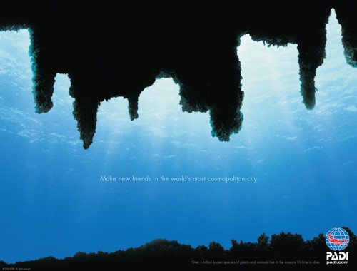 Самый большой в мире мегаполис по версии PADIСамая мощная всемирная сеть коммерческих центров и школ подводного плавания PADI (Профессиональная ассоциация подводных инструкторов, Professional Association of Diving Instructors) тоже нуждается в рекламе, что доказывает серия принтов, созданная сингапурским агентством Sparkfury Creative Consultants.С помощью плакатов креаторы сравнили морские глубины с самым большим на земном шаре домом, городом и страной, использовав подходящие для этого морские пейзажи. Слоган: "Узнай, почему это родной дом для большей части населения земного шара. Более 80% всех форм жизни можно найти в океане. Пришло время погружения. Познакомься с чудесами крупнейшей в мире страны. Более 70% земной поверхности покрыто океаном. Пришло время погружения. Завести новых друзей в самом крупном городе мира. Свыше 1 миллиона известных видов растений и животных живет в океане. Пришло время погружения." Агентство: Sparkfury Creative Consultants, Сингапур Творческий директор: Michael Wee Арт-директор: Johnny Tan Копирайтер: Joseph Seah Фотограф: Aaron Wong Другое: Procolor |