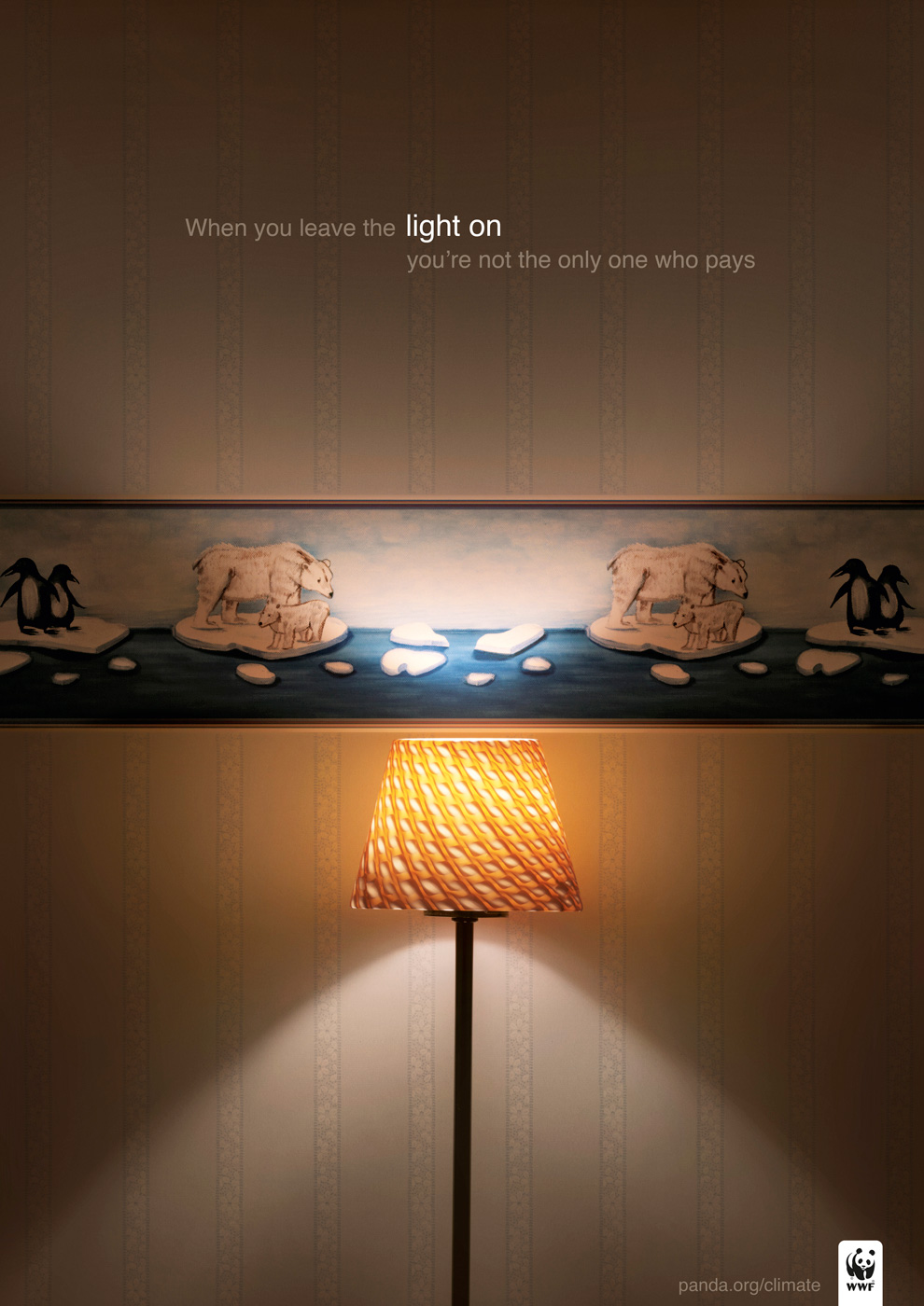 WWF Украина и Ogilvy & Mather призывают тушить светТекущая из крана вода или, как на этих принтах, непотушенный свет может достаточно ощутимо ударить по кошельку потребителя. Но, как правильно заявляют украинские креаторы из Ogilvy & Mather, человек – не единственный, кто расплачивается за свою расточительность… Вообще, сетевое агентство Ogilvy & Mather, с которым на протяжении многих лет так тесно сотрудничает WWF, уже не раз рассказывало с помощью своих социальных кампаний, как губительно человек влияет на окружающую природу. Так, например, румыны показали животных, созданных из мусора, а индийцы вырастили на их телах человеческий прогресс. Слоган: «Когда ты оставляешь свет включенным, ты не единственный, кто платит за это.» Агентство: Ogilvy & Mather, Украина |