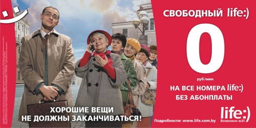 Effect BBDO продолжает заставлять улыбатьсяНовый мобильный оператор life:) запустил рекламную кампанию в БеларусиДля продвижения тарифа "Свободный life:)" рекламное агентство Efecta BBDO (Минск) разработало креативную концепцию, которая ярко и весело демонстрирует идею безграничного свободного общения по 0 рублей за минуту. Рекламный ролик очень кстати появился на белорусских телевизионных каналах 1 апреля 2009 года. Ролик вместе с режиссером Глебом Орловым и оператором Евгением Ермоленко снимал PARTIZAN Production (Минск). Состав творческой группы Рекламодатель: life:) Advertising Creation & Production Team Manager: Ната Любецкая Advertising agency: Efecta BBDO Creative director: Иван Крук Copywriters: Инна Носович, Виталий Захаров Art-director: Дмитрий Тараторкин Account-director: Ольга Кучко Production: PARTIZAN Production Director: Глеб Орлов Operator: Евгений Ермоленко Photographer: Денис Насонов Producer: Алексей Сатолин |