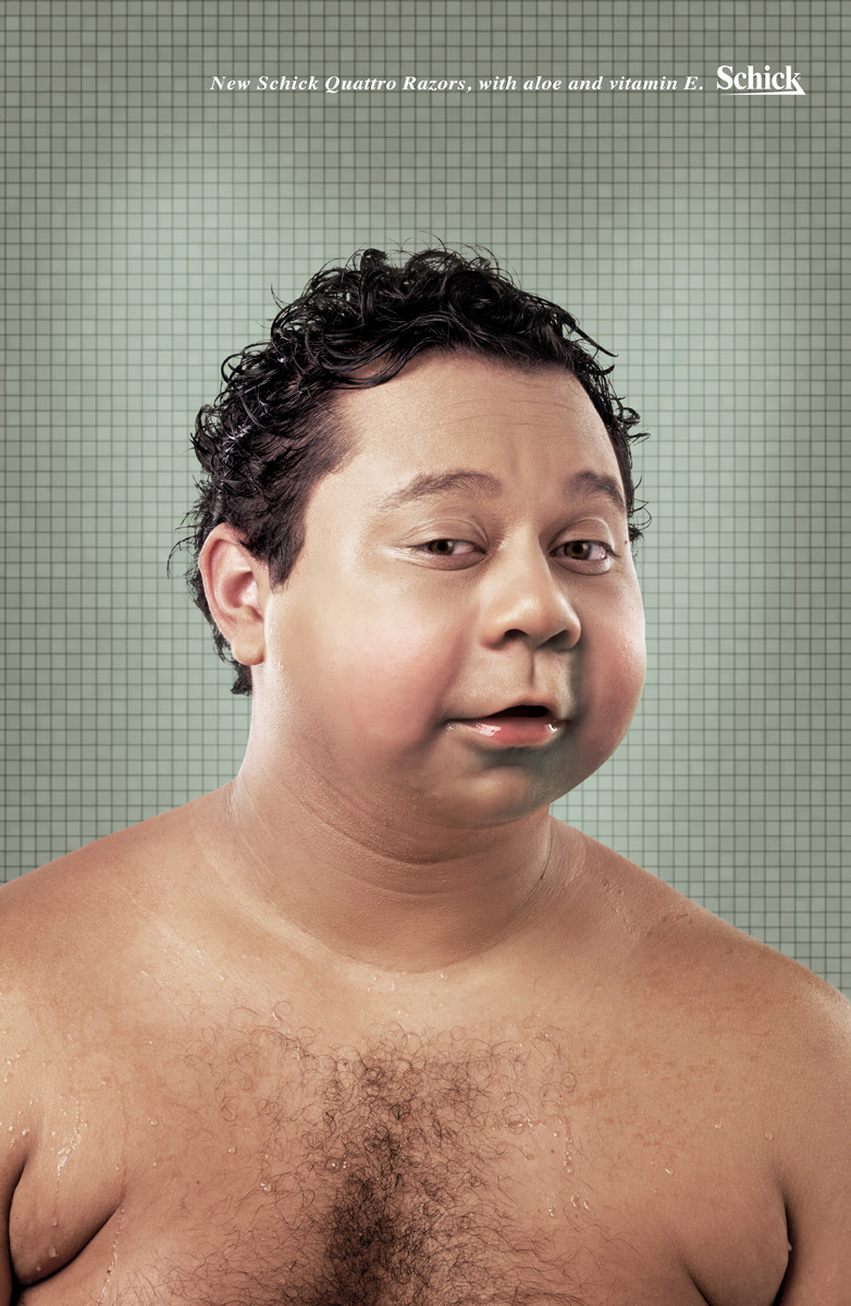 Омолаживающий эффект Schick QuattroНовый бритвенный станок, выпущенный под брендом Schick Quattro, который принадлежит компании Schick-Wilkinson Sword, содержит в составе своей смазывающей полоски экстракт алое и витамин Е, что, по мнению креаторов из венесуэльского подразделения агентства JWT, может превратить грубую кожу мужчин в нежную кожу младенца.Слоган: "Новый бритвенный станок Schick Quattro, с алое и витамином Е." Агентство: JWT, Венесуэла Фотограф: Marcel Boldu |