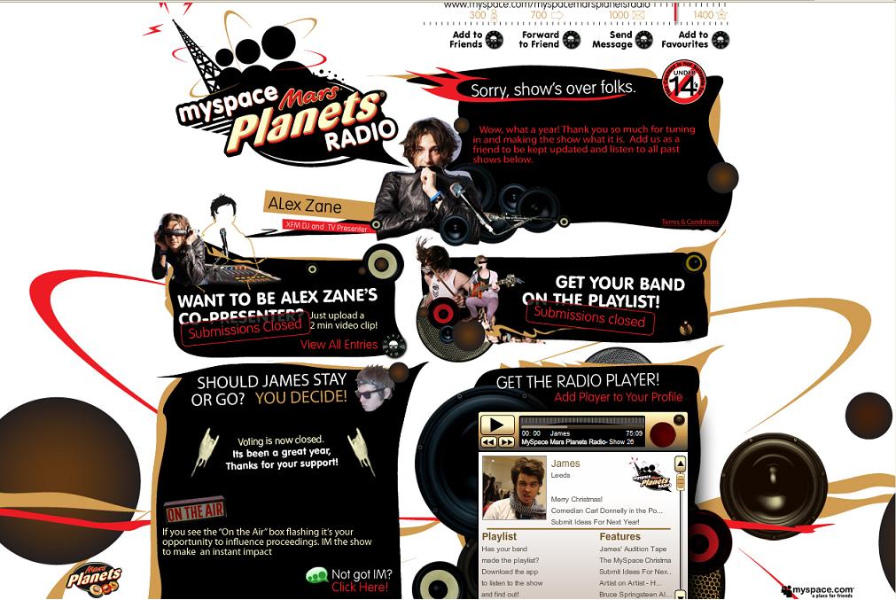 Mars и My Space - обрыв связиMars прекратили спонсорскую поддержку Mars Planets Radio - формируемой пользователям радиостанции от My Space, сообщает Brand Republic.Станция не будет работать, пока не найдется новый спонсор, но My Space отрицает возможность ее полного закрытия. Представители компании добавили, что имя спонсора будет включено как в эфирный, так и внеэфирный брендинг. Партнерские отношения со спонсорами - это одна из ключевых стратегий My Space, так как они сталкиваются с рекламной прибылью от обширной онлайновой аудитории - 7,4 миллиона пользователей. Так же они ищут спонсора для своего сайта с оригинальным контентом MySpace Music и локального присутствия на их летнем фестивале LIVE! In the UK. Глеб Кузнецов, Sostav.ru |