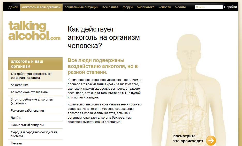 "САБМиллер" научит пить пивоЗапущена русская версия TalkingAlcohol.comКомпания "САБМиллер" (бренды Miller, Redd's, "Золотая Бочка" и др.) запустила русифицированную версию своего интернет-проекта TalkingAlcohol.com. Во всем мире информационный ресурс предоставляет информацию об алкоголе: от технологии производства пива до воздействия на организм. В компании сообщают, что сайт содержит мнения независимых экспертов в области алкоголя, а также рассказывает о рисках, связанных со злоупотреблением алкоголя. Правда, на одной из страниц сервиса можно найти такую фразу: "Встретиться с друзьями за кружкой пива - идеальный способ отдохнуть и прекрасно провести время", что вполне может вызвать недовольство ФАС. |
