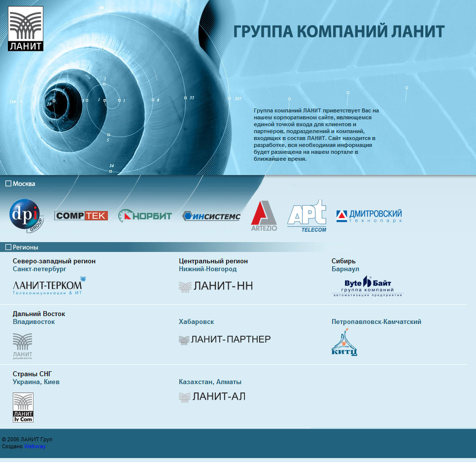 ГК "ЛАНИТ" (ЛАборатория Новых Информационных Технологий) - системный интегратор с региональной сетью филиалов, дочерних предприятий и технических центров. Он включает в свой состав несколько десятков департаментов и компаний. Большинство из них уже располагает сайтами или страницами в Интернет, созданными на свое усмотрение, и не имеющими никакого общего стержня.