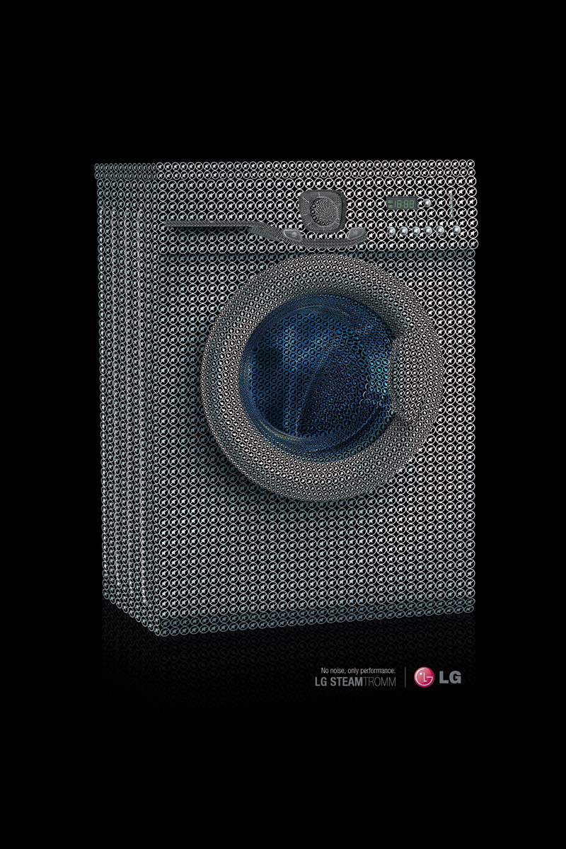 LG Steam Tromm подарят и чистоту, и тишинуВ 2005 году компания LG Electronics впервые представила свою первую стиральную машину с возможностью паровой обработки белья. Новинка называлась Tromm и отличалась от других стиральных машин тем, что в ней был установлен встроенный парогенератор. Усовершенствовав Tromm, сегодня компания LG выпускает линейку стиральных машин с парогенераторами - Steam, у которых вода и пар попадают на бельё одновременно через двойную спрей-систему. Эти машины отличаются не только прекрасным качеством стирки, но и низким уровнем шума.Именно последнее преимущество и постарались показать индийские креаторы из агентства Rediffusion Y&R, разработавшие этот рекламный плакат для LG Steam Tromm. Слоган: "Шума нет, есть только производительность." Агентство: Rediffusion Y&R, Дели, Индия Творческий директор: Akash Sharma Арт-директор / Иллюстратор: Karimuddin Khan Копирайтер: Banira Khati |