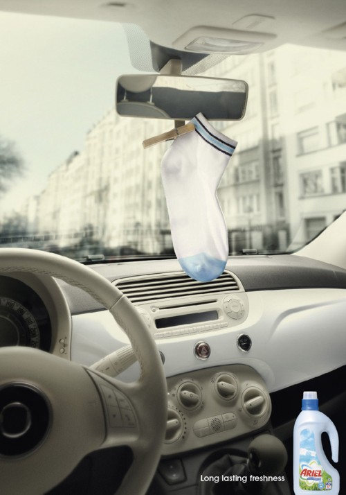 Ariel Gel заменит ароматизатор в автоРанее бельгийские креаторы из РА Saatchi & Saatchi Brussels уже создавали рекламную кампанию для специального карандаша, удаляющего пятна с одежды, под названием Ariel Poket. Теперь же они представляют вниманию потребителей новый рекламный плакат, рассказывающий о непревзойденных освежающих качествах другого средства под маркой Ariel - Ariel Gel. Слоган: «Свежесть, которая длится долго.» Агентство: Saatchi & Saatchi Brussels, Бельгия |