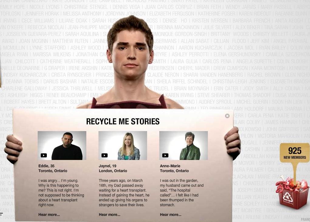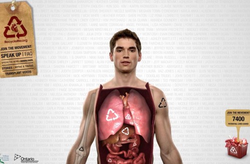 Пожертвуй свои органы!Пустые бутылки, жестяные банки и прочий хлам - это уже прошлый век для утилизации, сегодня актуально другое - внутренние органы.Канадская организация Trillium Gift of Life Network of Ontario, чтобы повысить мощность своих маркетинговых усилий, запустили новую кампанию для привлечения людей к пожертвованию внутренностей. Она включает в себя рекламные объявления с окровавленным символом переработки и фальшивые флаеры на продажу органов. Кроме того, запущен интерактивный сайт RecycleMe.org, где молодой человек популярно объясняет, почему же нам необходимо жертвовать свои органы. При этом он позволяет заглянуть к себе в нутро, для пущей наглядности объяснений и для своеобразной экскурсии. Те, кто проникнется речью "открытого" гида, могут зарегистрироваться на сайте, дабы, в случае внезапной смерти, их органы могли послужить еще кому-то. Стоит заметить, что эта кампания имеет довольно большое значение для 18-летней Джайнел Уайт, чей отец умер в 2006 году, находясь в листе ожидания трансплантации сердца. По ее словам, перед смертью отец пожертвовал свои органы тем, кто в них нуждался, чтоб они имели возможность спастись. Все весьма наглядно, с этим не поспоришь. Но как-то не возникает особого желания вступить в это движение, особенно после взгляда в нижний правый угол с бачком заполненным внутренностями. Президент Trillium Gift of Life Network Фрэнк Маркель заявил, что они хотели сделать что-то, что остро заинтересовало бы молодежь, поскольку тема пожертвования тканей и органов просто-напросто находится вне зоны внимания большинства молодых людей. "И у нас это вполне получилось, - сказал он. - Мы надеемся, что реклама привлекает как лесной пожар, заставляет молодых людей заходить на сайт и регистрироваться там, а затем обсудить проблему со своими родителями". То, что сайт привлек определенное внимание - вне всяких сомнений. А табличка, торчащая из урны с органами, услужливо сообщает, что на сайте зарегистрировалось около 1000 пользователей, то есть они могут спасти своей "щедростью" 7400 человек. Глеб Кузнецов, Sostav.ru |