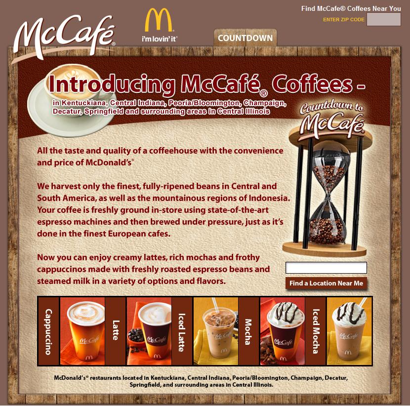 На новые продукты гиганта фаст-фуда - McDonald's Latte, McDonald's Cappuccino и McDonald's Mocha - затрачено 100 миллионов долларов, сообщает Advertising Age. Кампания будет включать в себя телевизионную, радио, печатную, наружную и онлайновую рекламу и стартует уже на этой неделе. Ожидается, что McCafé добавит до 1 миллиарда долларов к общей прибыли McDonald's в США - примерно по 75 тысяч с одного ресторана.