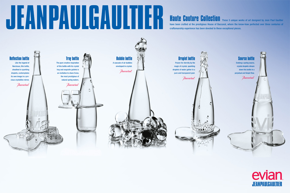 Труды Жана-Поля Готье пущены на водуДоходы от продажи дизайнерских бутылок Evian уходят на поддержание болотДизайнерские бутылки Evian, созданные Жаном-Полем Готье, были проданы на аукционе в Париже. Разработанные именитым французским дизайнером, бутылки выставлялись в главных столицах мира. В Москве, например, одну из бутылок можно было увидеть в Петровском пассаже. Благодаря творениям Jean Paul Gaultier и ведущих мастеров Bacсarat, Evian удалось собрать 16000 €, которые будут направлены на поддержание водно-болотных угодий в соответствии с конвенцией Ramsar, направленной на борьбу с глобальным потеплением с помощью охраны и восстановления водно-болотных ресурсов. |