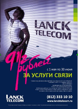 Эротичная телефония от "Ланк Телеком"В Петербурге стартовала рекламная кампания «Ланк Телеком», продвигающая акцию под названием «9 ? рублей» для корпоративных клиентов.Как пояснили Adlife.spb.ru в компании «Ланк Телеком», все корпоративные клиенты, обратившиеся в «Ланк Телеком» в период проведения акции, могут воспользоваться льготными условиями и подключить услуги связи за 9,5 рублей. «Предложение распространяется на подключение услуг телефонии, в том числе цифровых трактов Е1, доступа в Интернет, организации каналов передачи данных, а также интеллектуальной услуги нового поколения - «Виртуального офиса 2.0», - рассказывают представители «Ланк Телеком». ![]() Дизайн наружной рекламы был разработан специалистами отдела маркетинга и рекламы «Ланк Телеком». Идея оформления состоит в создании ассоциативного ряда с фильмом «9 ? недель» - графические материалы выполнены в стилистике данного фильма. Для создания визуального ряда была проведена постановочная фотосъемка в одной из профессиональных студий Санкт-Петербурга. ![]() Для продвижения акции используются биллборды на наиболее загруженных магистралях города, суперсайт 5x12 на Пулковском шоссе, рекламные плакаты в местах присутствия компании (indoor), flash-баннеры в интернете. Кампания продлится до 30 июня. adlife.spb.ru |