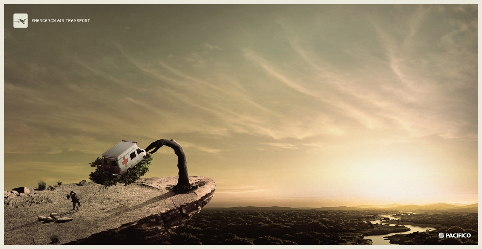 Страховая кампания Pacifico обеспечит по-настоящему быструю помощь"Скорая помощь" на то и скорая, что должна приезжать к нуждающемуся в ней человеку как можно быстрее. Однако современный город с его пробками и заторами можно сравнить по досягаемости с дикими джунглями или пустыней, никто не будет спорить, что в таких местах самый быстрый транспорт - это тот, который летает над землей. Именно такую услугу предоставляет своим клиентам перуанская страховая компания Pacifico, по заказу которой креативное агентство Circus Lima подготовило эти принты.Агентство: Circus Lima, Перу Ретушь: Oscar Castro / Yvan Oscanoa / Christian Moran Иллюстратор: Digimax 3d Главный творческий директор: Juan Carlos Gomez de la Torre Творческий директор: Jose Luis Rivera y Pierola Арт-директор: Gaston Soto / Piero Oliveri Копирайтер: carlos tolmos Продюсер: Gabriel cano |
