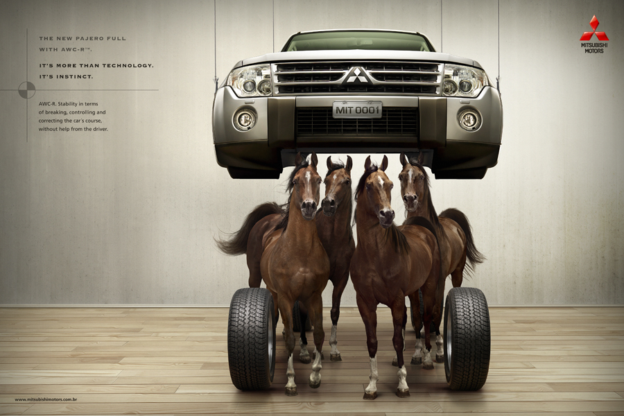 Под капотом у Pajero скрывается носорог и табун лошадейMitsubishi Pajero – флагман автомобильного модельного ряда японской группы компаний Mitsubishi. На сегодняшний день производится четвертое поколение этого автомобиля, впервые представленного в 1976 году на Токийском автосалоне как концепт-кар пляжного автомобиля.Эта серия принтов, созданная бразильскими креаторами из Africa Sao Paulo, рассказывает ЦА о новой технологии AWC (All Wheel Control), которая позволяет так четко и удобно управлять внедорожником Mitsubishi Pajero. Примечательно, что технология AWC разработана инженерами Mitsubishi, основываясь на опыте одной из самых известных гонок по пересеченной местности Rally Dakar, 12-кратным чемпионом которой является Pajero. Агентство: Africa Sao Paulo, Бразилия Главный творческий директор: Nizan Guanaes, Sergio Gordilho Творческий директор: Humberto Fernandez e Flavio Waiteman Арт-директор: Humberto Fernandez Копирайтер: Flavio Waiteman |