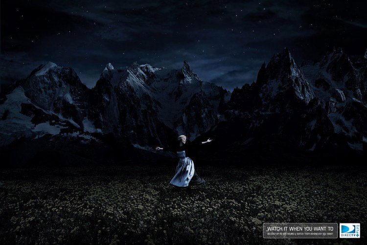 DIRECTV Plus: теперь Бэтмен вершит правосудие и днемVideo on Demand (VoD) (видео по запросу) – система индивидуальной доставки абоненту телевизионных программ или видеофильмов по кабельной сети с мультимедиасервера. Таким образом, Video on Demand является своего рода маленьким электронным видеопрокатом, когда фильм можно в любое время заказать из каталога. В последнее время интернет-порталы VoD набирают все большую популярность. И колумбийский онлайн-видеотека DIRECTV Plus не исключение. Создавая рекламную кампанию для этого портала, креаторы из агентства Leo Burnett Colombia взяли за основу известнейшие кадры из таких фильмов, как «Бэтмен», «Инопланетянин» (E.T.: The Extra-Terrestrial) и «Звуки музыки» (The Sound of Music), и просто изменили время суток. Слоган: «Смотри это тогда, когда ты хочешь.» Агентство: Leo Burnett Colombia, Богота, Колумбия |