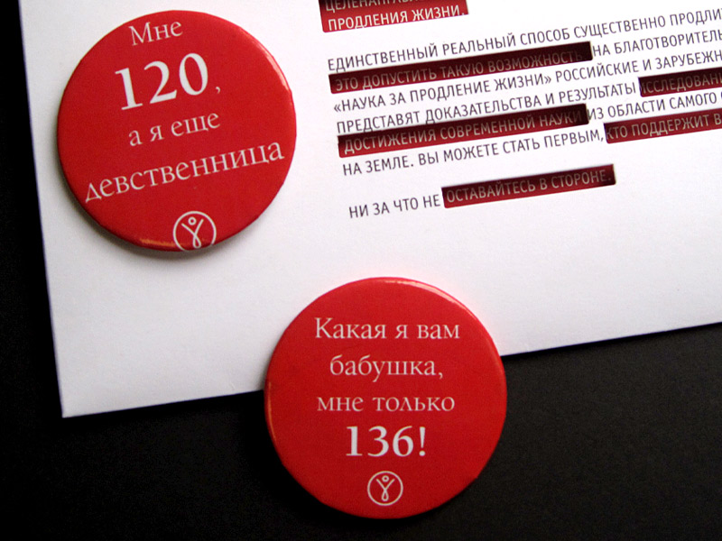Red Keds против старенияКреативное агентство Red Keds разработало промоматериалы для благотворительного вечера некоммерческого фонда "Наука за продление жизни", а также помогло организовать это мероприятие.Пригласительные на мероприятие были выполнены в двух частях. Первая, интригующая, была задумана как журнальная вырезка с пропущенными словами и рассылалась по почте. Вторая, раскрывающая, раздавалась уже на месте и уточняла интригующую часть, разъясняя концепцию вечера. Желающих прикоснуться к вечности оказалось неожиданно много. Для того, чтобы гости благотворительного вечера запомнили его надолго, в Red Keds придумали ширму в виде передовицы газеты будущего, рассказывающей о первом человеке, которому удалось победить старость. Место иллюстрации к статье было вырезано, и любой желающий мог пройти за ширму и сфотографироваться, получив в конце вечера фотографию сенсационного материала с собой на обложке . Кроме того, в рамках проекта была создана серия забавных значков, говорящих от лица состоявшихся долгожителей: "Выгляжу на все 100, но на самом деле я гораздо старше", "145 - баба ягодка опять", "Детям до 80 вход бесплатный", "Мне 120, а я еще девственница" и т.д. Состав творческой группы Идея: Red Keds Руководитель проекта: Алина Базелюк Креативный директор: Виталий Быков Арт-директор: Евгений Стройнов Дизайнер: Роман Емельянов Копирайтер: Илья Петров Менеджер: Дмитрий Раскладка |