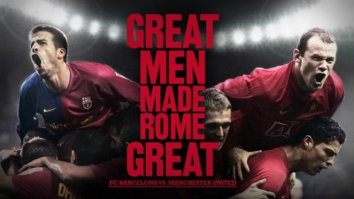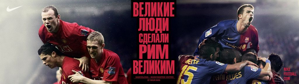 Компания Nike специально в преддверии Лиги Чемпионов выпустила плакаты в поддержку своих команд - Manchester United и Barcelona. Баннеры - интернациональные и будут размещаться в местах продаж.