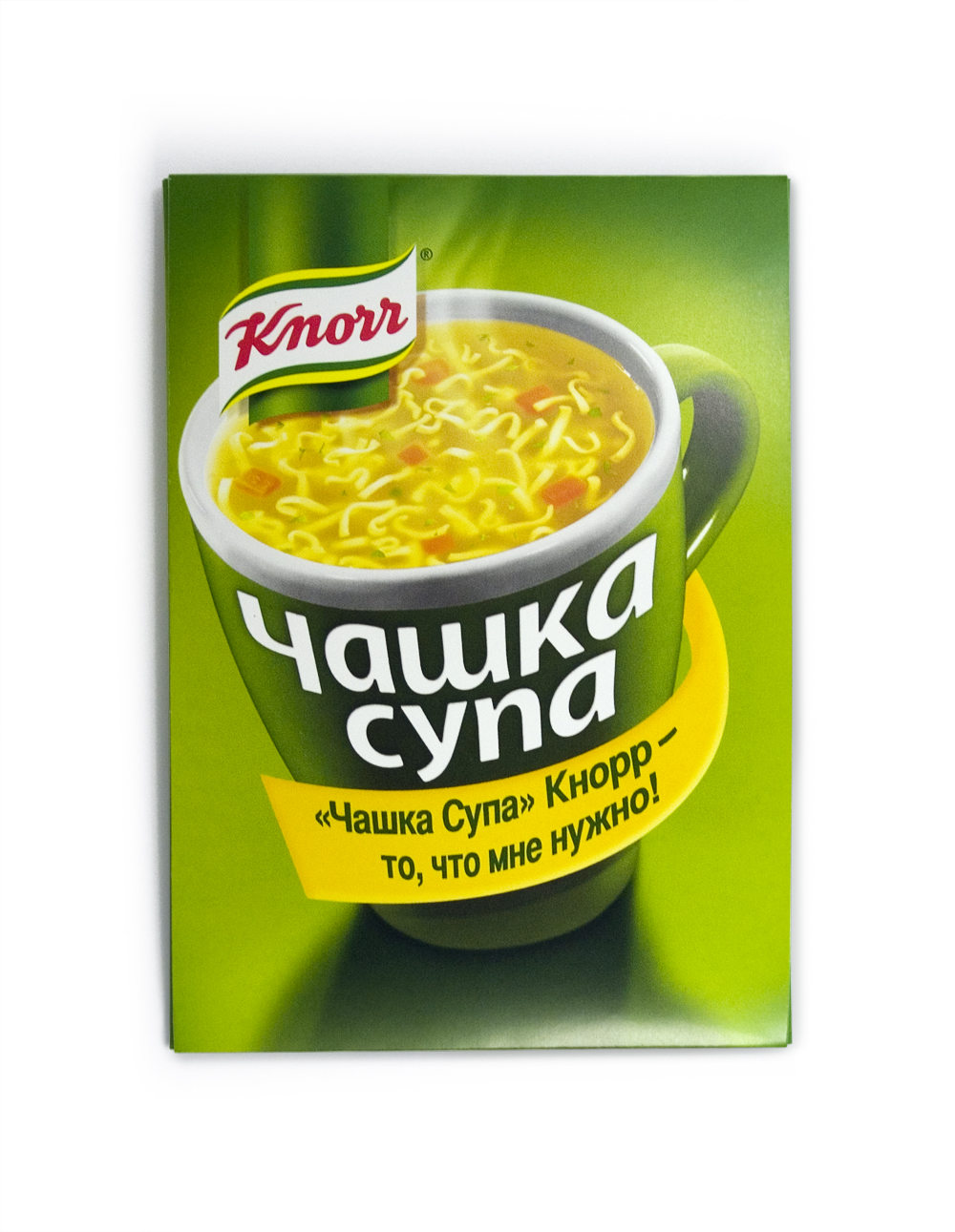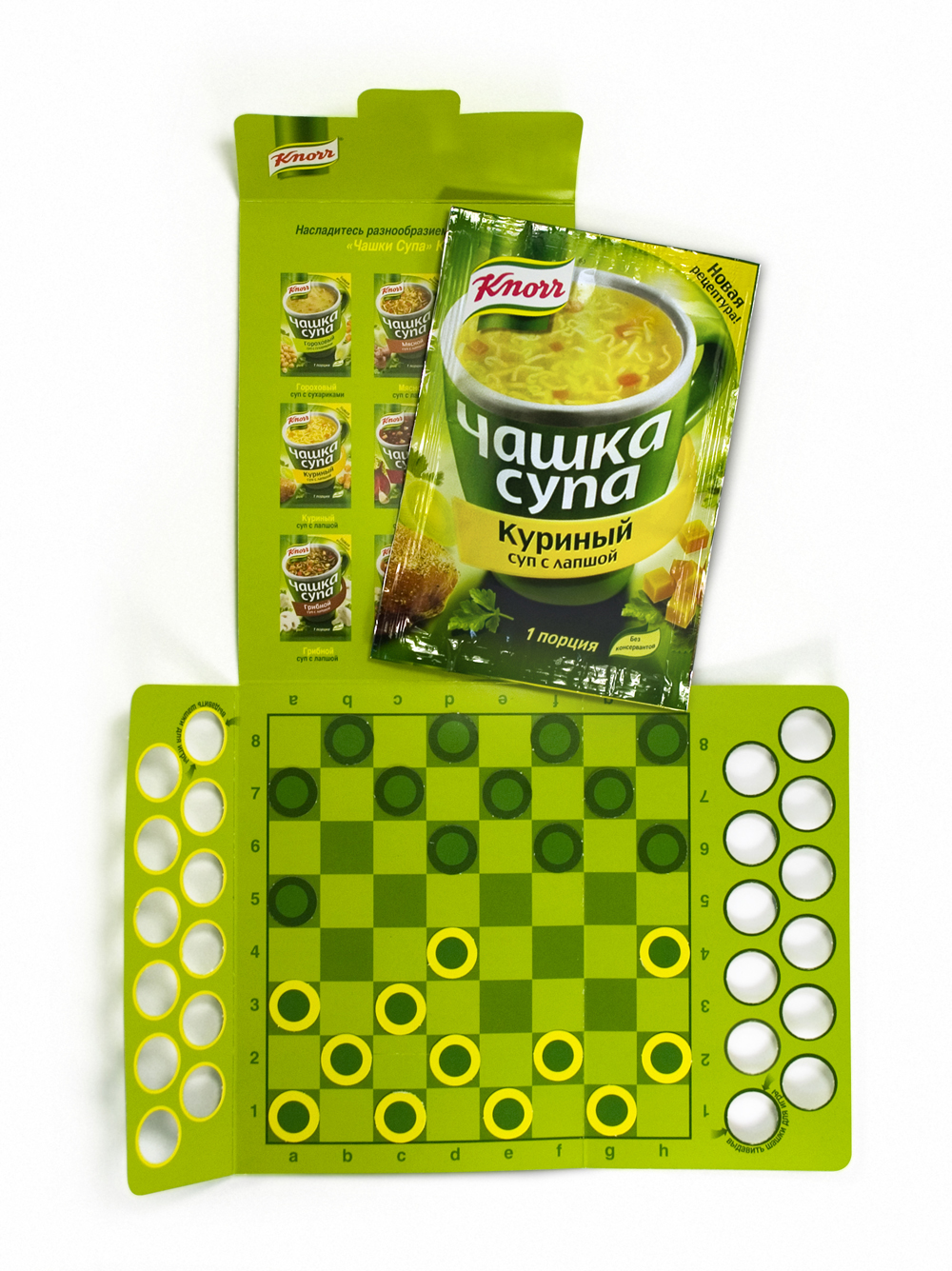Пассажиры в поездах будут играть в Knorr Теперь в российских поездах можно будет и сыграть партию в шашки и бесплатно попробовать «Чашку супа» Knorr. Агентство «Соус» выиграло тендер на разработку сэмплинг-упаковки для «Чашки супа Кнорр» (бренд компании Юнилевер), предназначенной для раздачи в поездах.