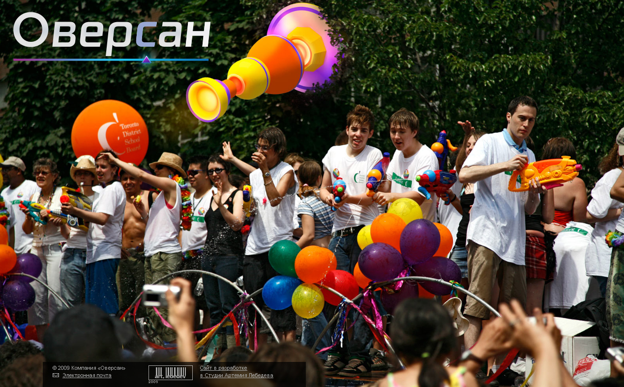 Состав творческой группы: худрук Артемий Лебедев арт-директор Людвиг Быстроновский дизайнер Андрей Зубрилов шрифтовик Елена Новоселова редактор Татьяна Деваева менеджеры Иракли Агладзе Алексей Лури Также в Студии Артемия Лебедева были разработаны заглушки для сайта компании Оверсан, которые появляются на время разработки сайта - логотипы "Оверсана" появляются в разных городах мира: Состав творческой группы: арт-директор Людвиг Быстроновский дизайнер Василий Сергеев технолог Владислав Яковлев менеджер Алексей Лури |