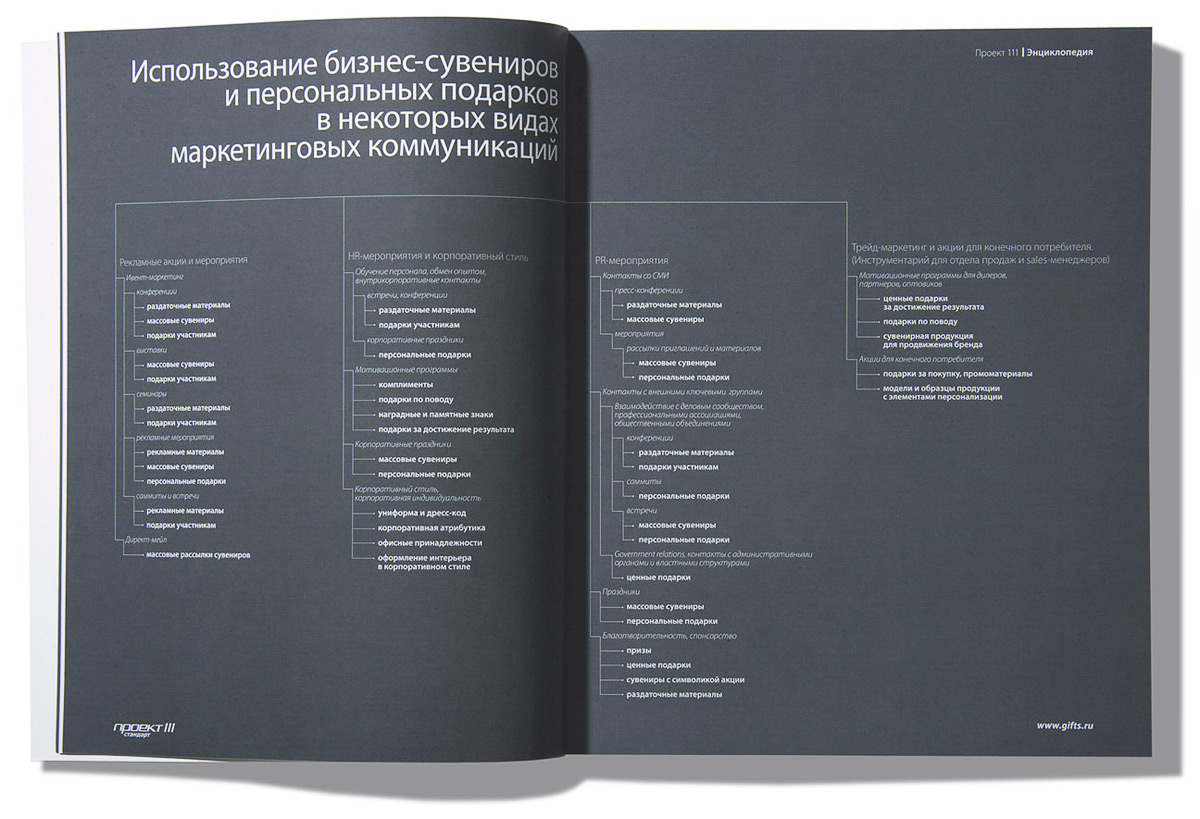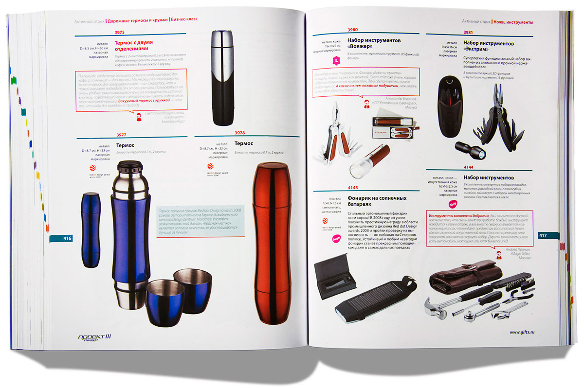 "Проект 111" и Студия DEZA представили Энциклопедию рекламных сувениров"Проект 111", один из лидеров российского рекламно-сувенирного рынка, выпустил в свет новый каталог продукции. На этот раз каталог носит название "Энциклопедия рекламных сувениров". Воплощением каталога "в бумаге" занималась Студия DEZA."Прежде всего необходимо было структурировать и упорядочить огромный и очень разноплановый объем информации, обеспечив удобное, комфортное и привлекательное для читателя пользование каталогом-энциклопедией, - говорит руководитель студии Илона Колтынюк. - Мы все время держали в голове, что "благодарный читатель - тот, которому обеспечен наибольший комфорт чтения". Нам хотелось обеспечить несколько "планов" прочтения каталога, несколько скоростей: от "быстрого просмотра" до "максимально детального знакомства" - таким образом, чтобы на каждой "скорости" значимая информация воспринималась максимально полно и привлекала внимание потребителя, ведь при выборе подарков и сувениров эмоциональный фактор "нравится, хочу, интересно" имеет немаловажно значение. Новый каталог-энциклопедия должен был получиться современным, серьезным и в то же время дружественным и располагающим к диалогу. Эти задачи мы решали именно за счет дизайна. Наконец, 564 полосы не должны быть однообразными, иначе читатель просто устанет. Именно поэтому в подобных многостраничных изданиях важно своевременно менять "ритм", разбавляя стройную верстку "ловушками" внимания и при этом придерживаясь золотой середины: не нарушать, с одной стороны, общую гармонию и стройность изложения материала, а с другой стороны - избегать монотонности и скуки". Каталог вышел из печати в конце мая и сейчас активно распространяется среди рекламных агентств. Состав творческой группы Проект 111: Главный редактор: Андрей Дегтяренко Ответственный выпускающий: Юлия Алексеева Литературный редактор: Любовь Папер Студия DEZA: Креативный директор: Александр Суворов, Илона Колтынюк Арт-директор: Михаил Дымов Дизайнеры: Нина Клеопина, Ирина Шмидт, Максим Гургуца, Наиля Четвертакова, Настя Жуковская Фотограф: Александр Артеменко |