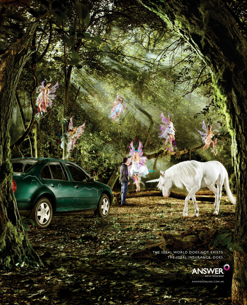 Сказочные сюжеты страхованияВ прошлом году аргентинские креаторы из рекламного агентства Dialogo Publicidad уже знакомили ЦА со страховой компанией Answer. Эта компания является аргентинским представительством всемирно известной страховой группы RSA group, представительство которой в России известно под названием INTOUCH. Сегодня аргентинские креаторы вновь напоминают о страховщике Answer, рассуждая на тему идеального мира и идеальной страховки. Слоган: «Идеального мира не существует, идеальное страхование существует.» Агентство: Dialogo Publicidad, Аргентина |