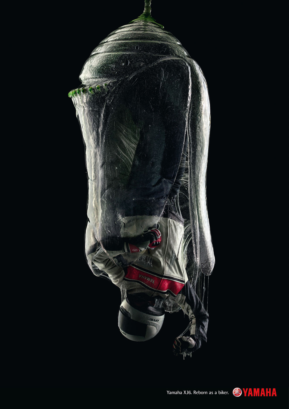 Благодаря Yamaha XJ6 из куколки вылезет настоящий байкерYamaha Corporation - всемирно известный японский концерн, производящий бытовую технику: акустическую электронику, акустику, спортивный инвентарь, музыкальные инструменты, мотоциклы и многое другое.В 2009 модельном году линейка мотоциклов Yamaha среднего класса пополнилась динамичным и маневренным мотоциклом XJ6, который представляет собой нейкид-версию XJ6 Diversion. Креаторы из итальянского агентства 1861United, подготовившие этот рекламный плакат, утверждают, что Yamaha XJ6 заставит любого человека переродиться в байкера. Слоган: "Yamaha XJ6. Перерождение в байкера". Агентство: 1861United, Милан, Италия Главный творческий директор: Pino Rozzi, Roberto Battaglia Творческий директор: Francesco Poletti, Serena Di Bruno Арт-директор: Filippo Solimena Копирайтер: Carlo Pinzi Фотограф: Fulvio Bonavia Арт-байер: Maria Benenati Другое: Filippo Cazzaniga |