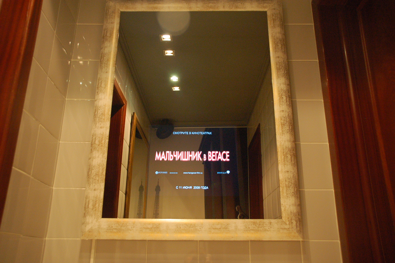 Фильм "Мальчишник в Вегасе" показали на зеркалахВ июне 2009 в поддержку рекламной кампании фильма "Мальчишник в Вегасе" студии Warner Brothers на рекламных зеркалах Mirror-TV были размещены трейлеры к фильму. География- город Москва.Возможности таргетинга позволили достаточно просто заполучить целевую аудиторию этой гомерически смешной кинокомедии, благодаря выбору заведений представленных в адресной программе компании Mirror-TV. |