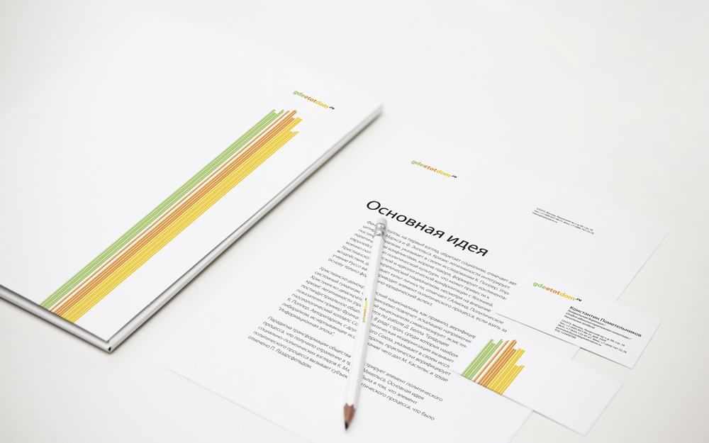 Благодаря ONY офис gdeetotdom.ru обзавелся фирменным деловым комплектом. Фирменная майка в шутливой форме обыгрывает название проекта. |