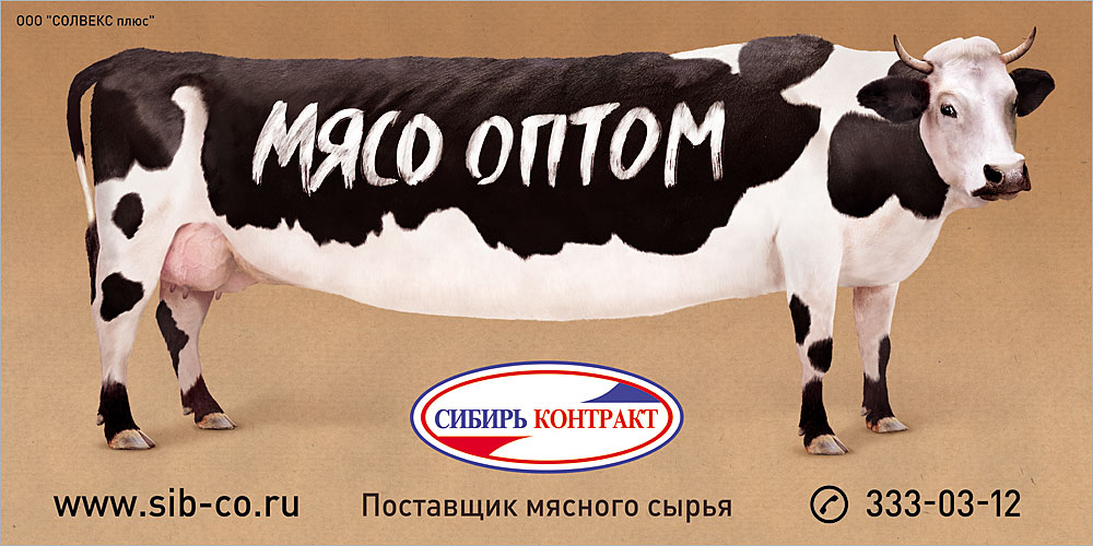 "Мелехов и Филюрин" грузят мясо оптомРекламная группа "Мелехов и Филюрин" разработала идею печатной рекламы для компании "СИБИРЬ КОНТРАКТ", одного из ведущих поставщиков на рынке мяса и мясопродуктов на территории Новосибирска и Сибирского региона.Прежде всего, реклама ориентирована на мужчин в возрасте 40-55 лет с высшим образованием и высоким уровнем достатка. Это собственники и руководители предприятий по переработке мяса и розничной торговле. При производстве макетов ни одно животное не пострадало. Состав творческой группы: Идея: Владимир Сергеев, Сергей Бирюков Дизайн: Наталья Елисеева, Павел Алексеев Арт-директор: Михаил Угожаев Менеджер проекта: Екатерина Глебова |