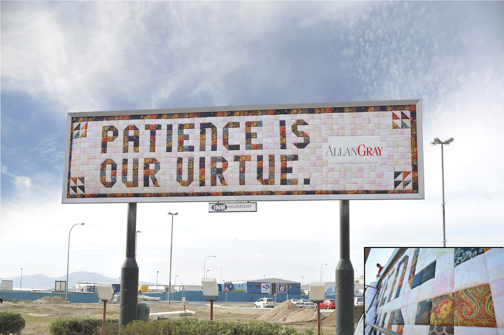 Очередная требующая терпения кампания от Allan GrayЮжно-африканская инвестиционная компания Allan Gray придерживается долгосрочной инвестиционной политики. Это касается не только бизнеса, но и выбора рекламного агентства, ведь РА King James Cape Town уже не первый год создает для Allan Gray рекламные кампании. В качестве примера можно привести прошлогоднюю кампанию о связи времени и потенциала, а также рекламный щит, на изготовление которого у креаторов ушло 4 недели и который в итоге принес им бронзу в номинации Billbords на Clio Awards 2009. Сегодня King James Cape Town вновь продемонстрировало свою терпеливость, представив публике очередной щит, созданный при помощи лоскутной техники. Слоган: «Терпеливость – это наше достоинство.» Агентство: King James Cape Town, ЮАР |