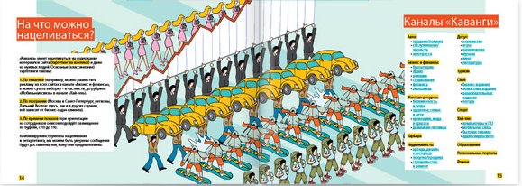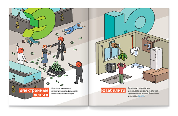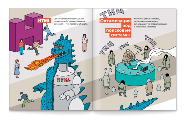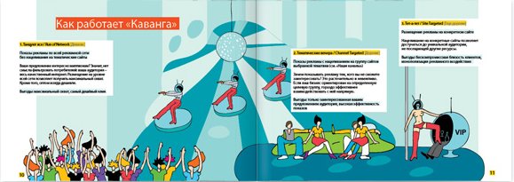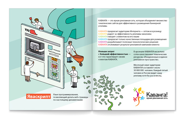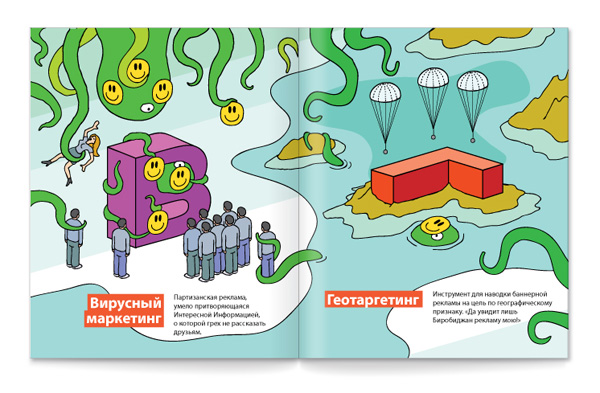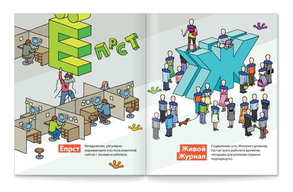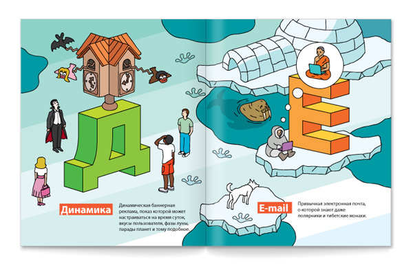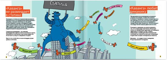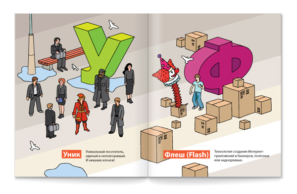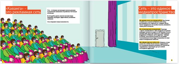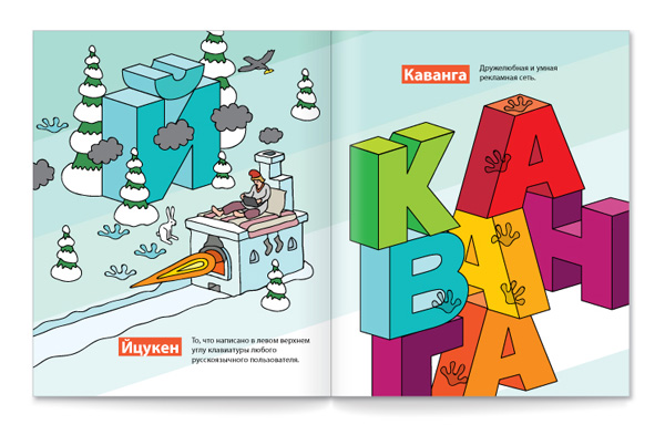 По словам дизайнеров, от них требовалось сформировать платформу для долгоиграющих брэнд-коммуникаций. «То, что «Каванга!» — не такая рекламная сеть, как другие, мы поняли уже на первом интервью. Однако осознать, какие отличия приоритетны, и как вообще следует начинать разговор об интернет-рекламе с не очень просвещенной в интернет-специфике публикой — вот это была задача не из простых», — рассказывает арт-директор Zero b2b communications Павел Ёлшин. В результате переговоров с заказчиком разработчики остановились на концепции «тотемного животного»: в качестве символа «Каванги» агентство предложило ящерицу — быструю, чуткую, юркую и яркую. «Ящерица — в высшей степени точный образ. Отбросив порядка десяти перспективных кандидатов на роль корпоративного тотема, мы отжали творческий материал до бескомпромиссно конъюнктурного и выразительного знака», — убежден креативный директор агентства Сергей Ушан. В процессе работы над брэндбуком дизайнерам стало ясно: у «Каванги!» будет особый стиль коммуникаций, творческий и игровой. Тексты и изображения должны быть понятными, полезными и «незанудными». Так появилась концепция имиджевого буклета. ![]() ![]() ![]() ![]() ![]() ![]() ![]() ![]() ![]() Оценив обратную связь после выхода буклета, руководители сети решили «закрепить успех» и выпустить от имени «Каванги!» «Азбуку интернет-рекламы», практически полностью освобожденную от прямого селф-промо. «Тридцать три оригинальные иллюстрации на тридцать три буквы, необычный для корпоративной прессы формат карманного словаря — изначально несерьезное издание не претендует на академическую полноту, однако развлекательно-образовательную функцию выполняет так же качественно, как и маркетинговую», - считают разработчики. ![]() ![]() ![]() ![]() ![]() ![]() ![]() ![]() ![]() ![]() ![]() ![]() ![]() ![]() ![]() ![]() ![]() ![]() «Корпоративные издания, которые читают от начала до конца. Звучит неправдоподобно? Мы тоже так думали, пока не получили тираж из типографии», — признается учредитель и президент «Каванги!» Сергей Журавлев, когда-то стоявший у истоков AdMedia. Рабочая группа: креативная дирекция - Сергей Ушан |