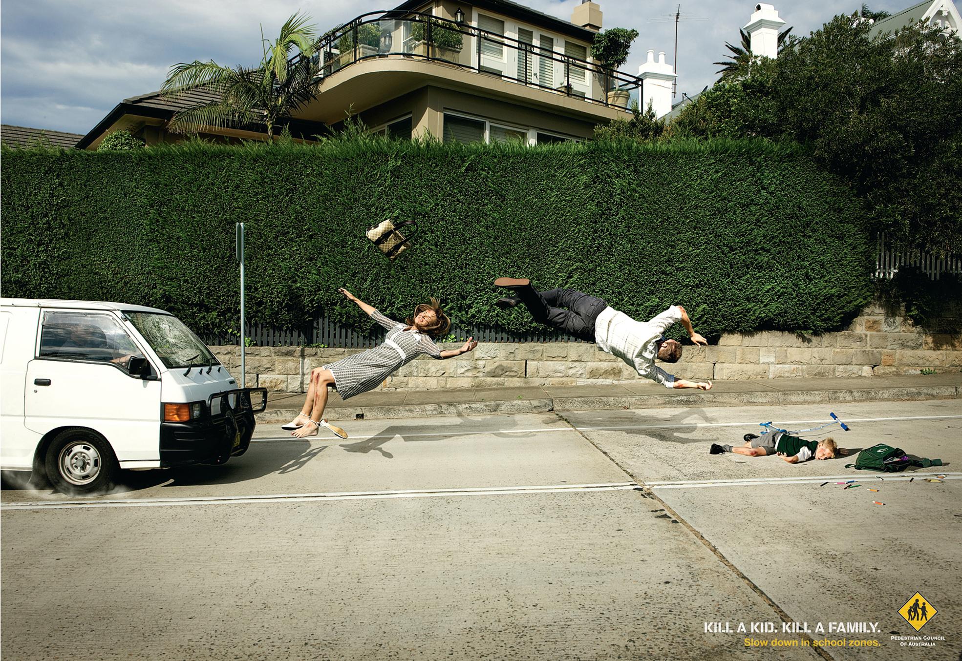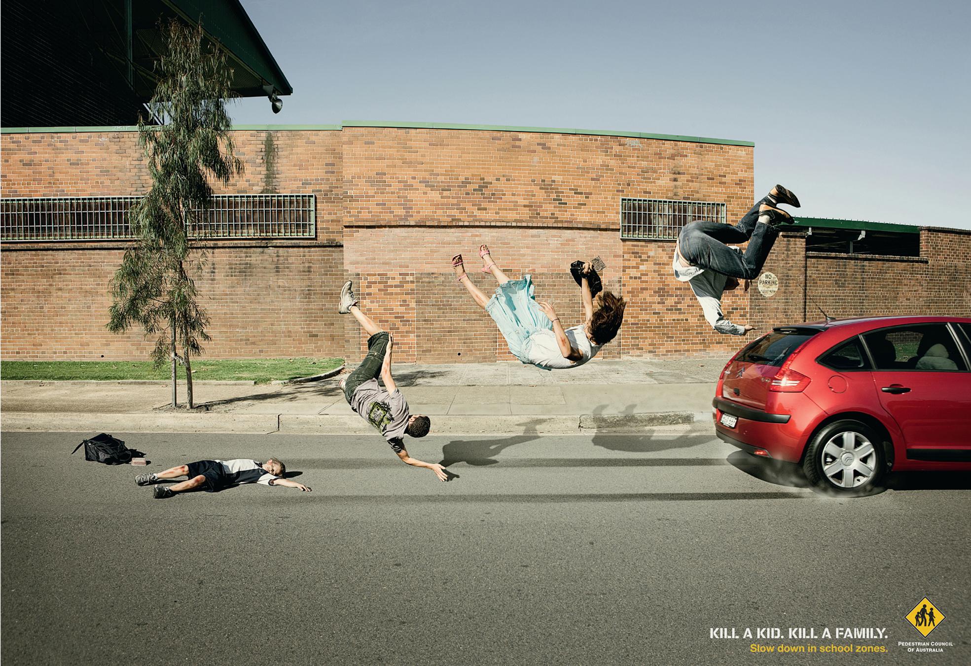 Pedestrian Council of Australia: убивая ребенка, убиваешь всю его семьюСовет по пешеходному движению Австралии (Pedestrian Council of Australia) совместно с рекламным агентством Saatchi & Saatchi Sydney, напоминает водителям о необходимости снижать скорость движения на участках, расположенных в непосредственной близости от школ. Ведь убить ребенка - это все равно, что убить всю его семью, что и проиллюстрировали креаторы при помощи серии жестоких принтов.Слоган: "Убить ребенка. Убить всю семью. Замедли скорость в школьной зоне". Агентство: Saatchi & Saatchi Sydney, Австралия Фотограф: Gary Sheppard Ретушь: Marcus Thyer @ Cave Главный творческий директор: Steve Back Креатив: VINCE LAGANA, Steven Jackson Производство: Jeremy De Villiers Арт-байер: Skye Houghton / Alice Quiddington Эккаунт-менеджер: Ali Klujin |