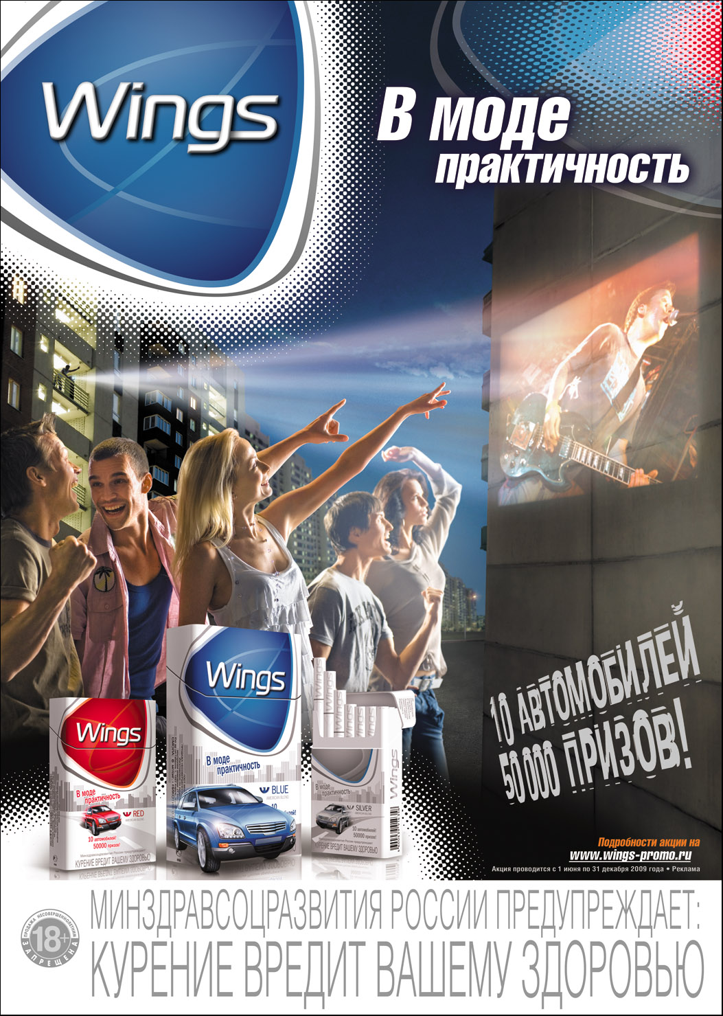 ПолетелиРекламное агентство PRIOR разработало креативную концепцию для федеральной TTL кампании по продвижению сигарет WingsКреативная концепция для бренда Wings создавалась в рамках тендера. Перед участвовавшими в конкурсе агентствами стояла задача разработать единое решение для коммуникационной платформы и создать key visual для TTL кампании. РА PRIOR победило в конкурсе - в соответствии с результатами проведенного исследования предложенная агентством концепция "Танцы" наиболее полно отразила идею и основное рекламное сообщение будущей кампании "В моде практичность", заняв первое место на каждой из шести проведенных фокус-групп. Для TTL кампании было предложено два варианта визуализации бренда Wings: "Танцы" и "Кино". Концепция "Танцы" демонстрирует оригинальный подход к организации клубной жизни. Не всегда хочется идти в клубы: одни непомерно пафосные и гламурные, какие-то слишком дорогие, где-то звучит не та музыка. Практично летом под настроение собраться вместе с друзьями, чтобы потанцевать именно под те композиции, которые нравятся твоей компании. Основой сюжета "Кино" послужил коллективный просмотр фильма. Что может быть практичней домашнего кинотеатра, когда хочется посмотреть с друзьями фильм, которого нет ни в одном кинотеатре города? Не беда, если все не поместятся в комнате, любимое кино можно посмотреть во дворе, где экраном послужит стена крупнопанельного дома, а места хватит всем желающим. Как в первом, так и во втором случае герои выбирают практичные, естественные решения. В их понимании модными и прогрессивными могут быть только те вещи и явления, которые показывают себя полезными в повседневной жизни и облегчают общение с окружающими. Оба варианта представленной креативной концепции предполагают максимально широкое использование в различных коммуникативных средах: в прессе, Интернет, promo, indoor и т.д. Состав творческой группы Заказчик - ЗАО "Дж.Т.И. по Маркетингу и Продажам" Brand Manager / Wings - Владимир Талалов Product Manager / Wings - Алексей Дьяков Агентство - РА PRIOR: Директор по работе с клиентами - Микаэль Гусейнов Старший менеджер по работе с клиентами - Константин Бочаров Менеджер по работе с клиентами - Дмитрий Сэльдемиров Директор по стратегическому планированию - Петр Троицкий Специалист по стратегическому планированию - Алексей Бакиров Руководитель креативной группы - Евгений Золотарев Арт-директор - Дмитрий Никифоров Продюсер - Марина Коротаева Ассистент продюсера - Анастасия Пацко Производство - Duck Soup Генеральный продюсер - Раис Ануфриев Исполнительный продюсер - Наталья Пекарева Фотограф - Илья Буш |