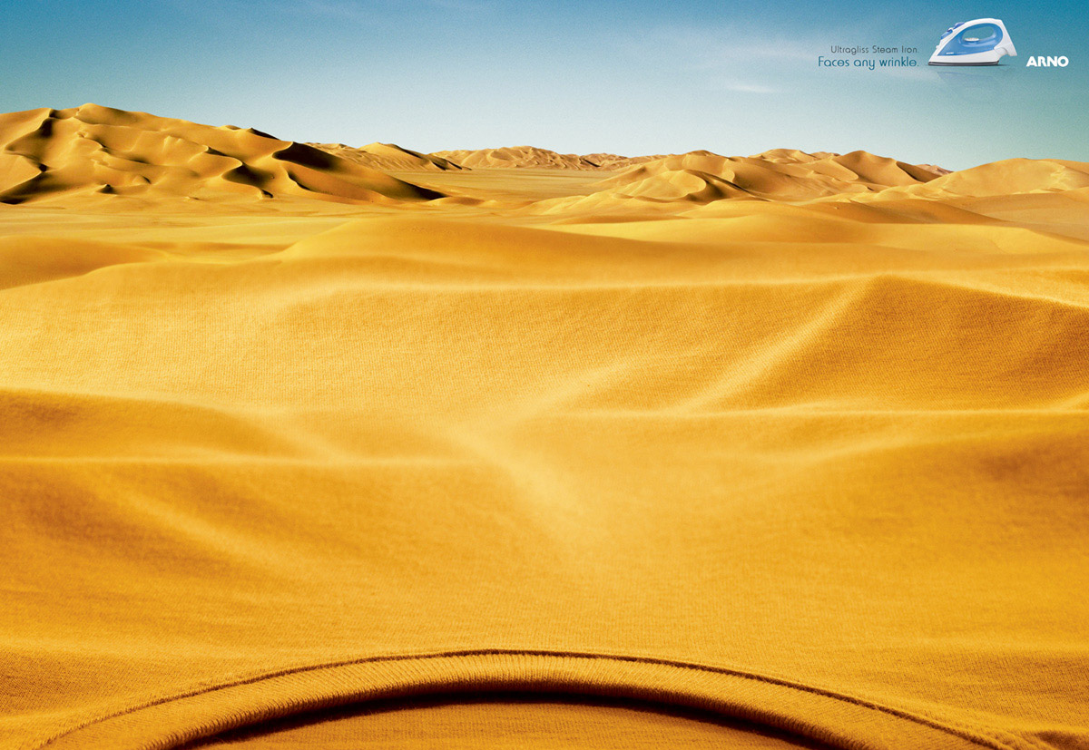Arno превращает горы в равниныКорпорация Groupe SEB, являющаяся одним из мировых лидеров по производству и реализации бытовой техники и товаров народного потребления, выпускает продукцию под такими известными марками, как TEFAL, Rowenta, Moulinex, а также Arno, о которой и пойдет речь сегодня. Рекламные работы для этой марки мелкой бытовой техники создает, как правило, агентство Publicis Brasil. Именно бразильским креаторам принадлежит честь создания взрывоопасных продуктов для рекламы кухонных комбайнов Arno, а также плохо чувствующей себя одежды для рекламы центрифуг этой же марки. Сегодня бразильцы представляют вниманию ЦА утюги Arno, которые способны разгладить не только складки, но даже высокие горы и песчаные дюны. Слоган: «Ультрагладкий паровой утюг. Разглаживает любые неровности». Агентство: Publicis Brasil |