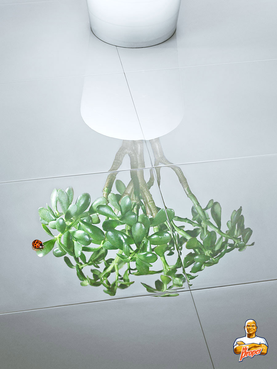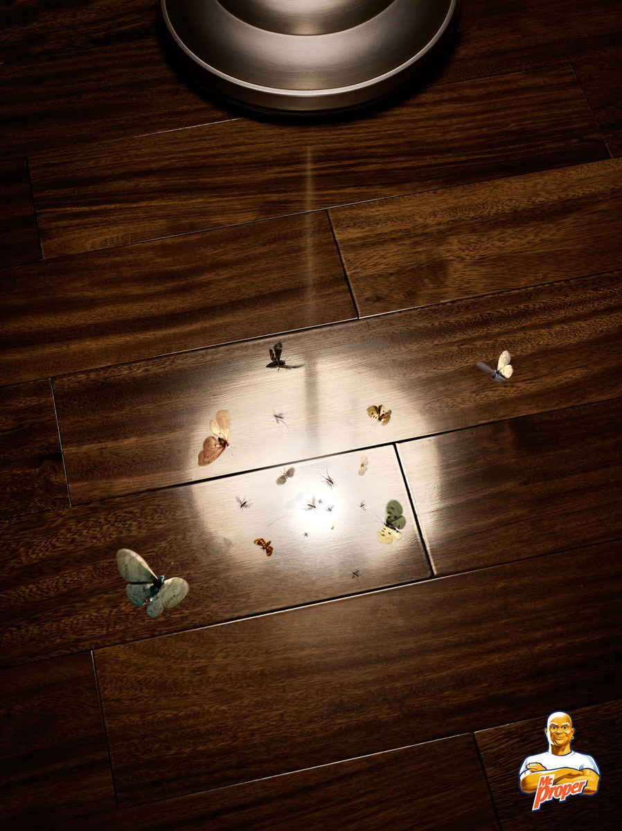 Mr. Proper обманывает насекомыхЧистящие средства под маркой Mr. Proper от американского концерна Procter & Gamble (также известные на мировых рынках под названиями Mr. Clean и Maestro Limpio) прекрасно справляются с мытьем полов, что и попытались показать румынские креаторы из рекламного агентства Grey Bucharest, подготовившие эту серию принтов. Совсем недавно их аргентинские коллеги из РА Grey Argentina также предпринимали попытку показать удивительный эффект Mr. Clean, заставивший пол светится. Агентство: Grey Bucharest, Румыния |